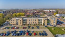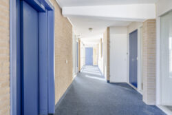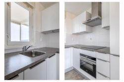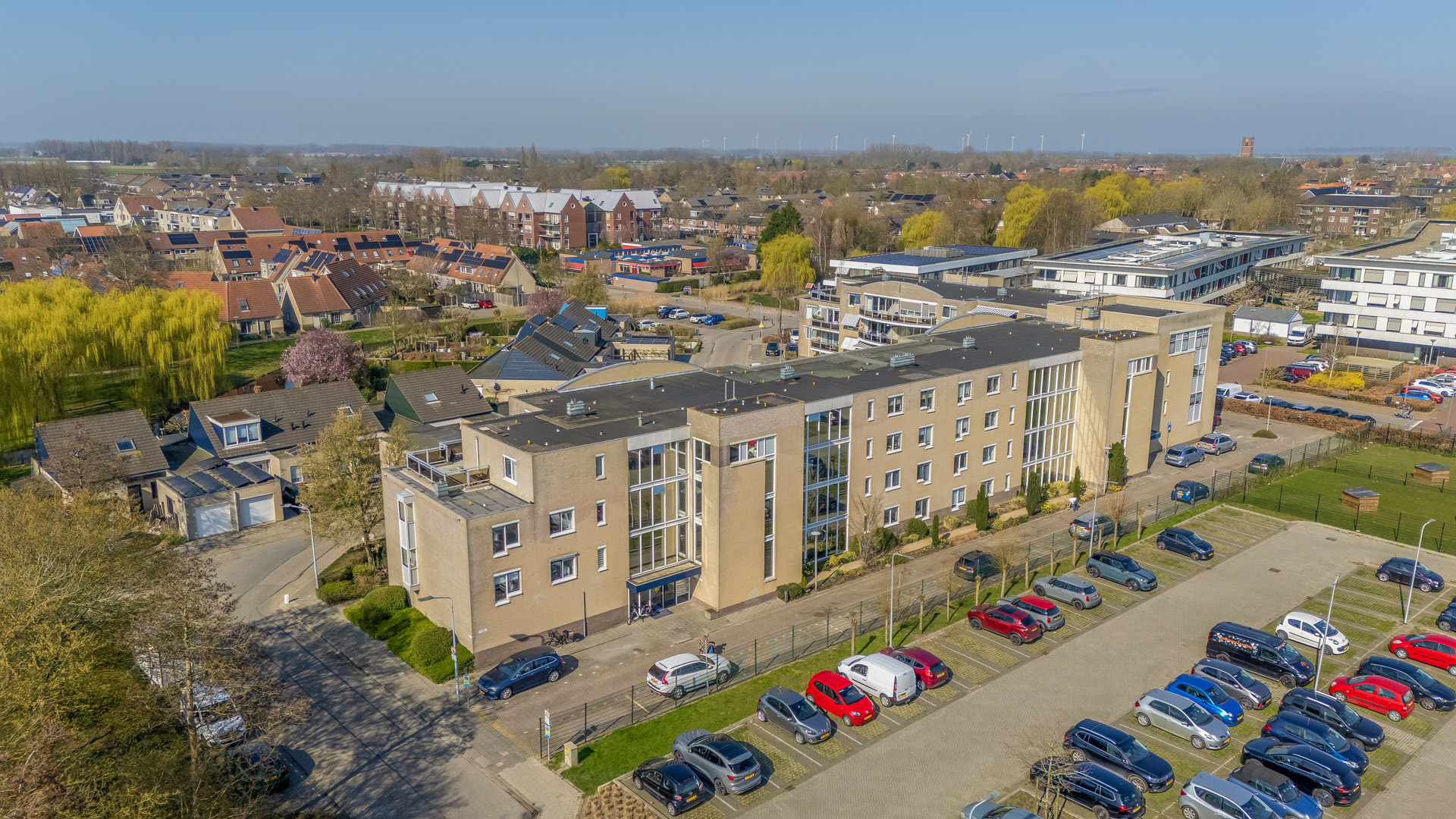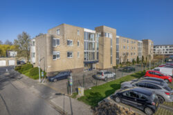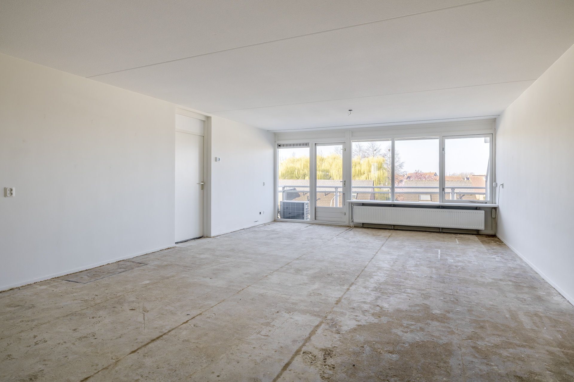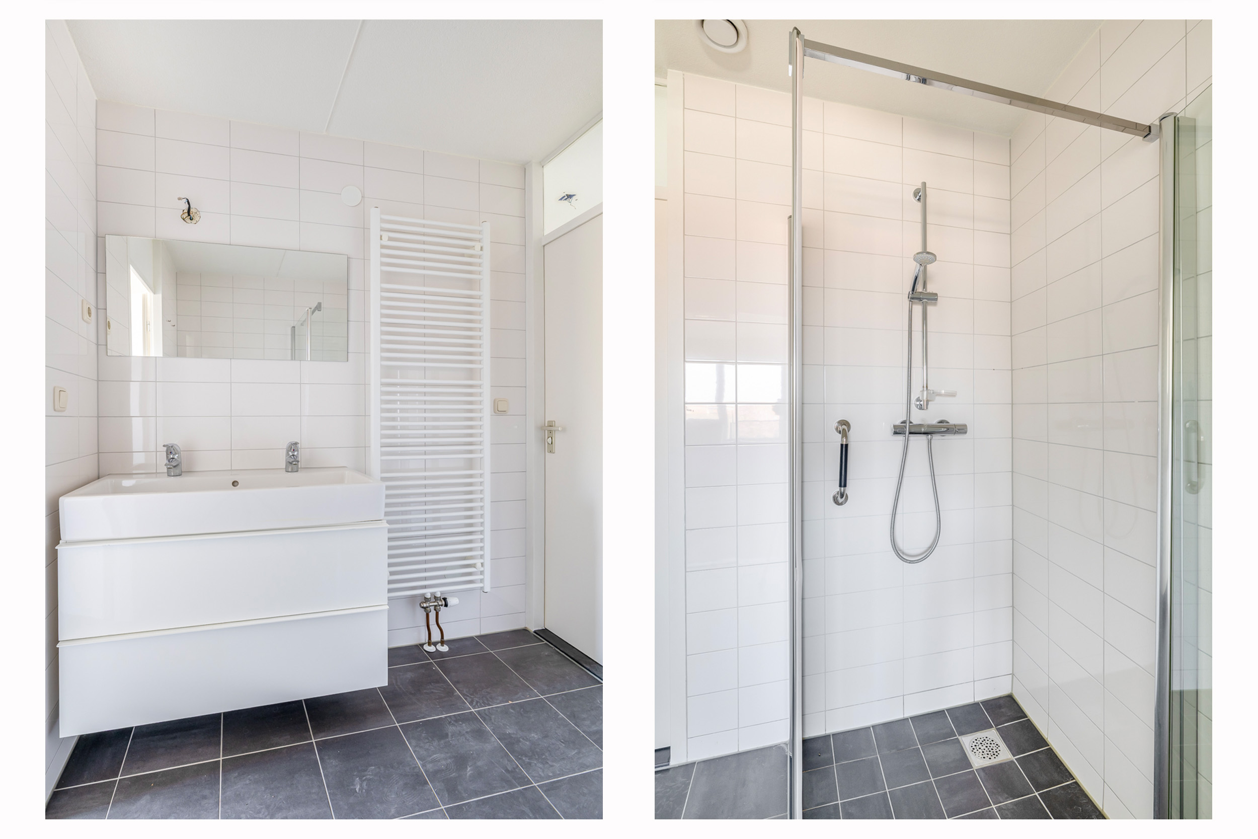 Het complex verwelkomt je met zowel een verzorgd trappenhuis als een lift, comfortabel en toegankelijk. Bij binnenkomst in de woning zelf ontvouwt zich een lichte woonkamer met open keuken, een ruimte die uitnodigt tot samenzijn en ontspanning. De brede raampartijen aan de achterzijde zorgen voor een prachtige lichtinval en leiden je naar het balkon, een zonnige plek waar je de dag stijlvol begint en ontspannen afsluit. De open keuken aan de voorzijde is praktisch ingericht en voorzien van diverse inbouwapparatuur, ideaal voor wie houdt van koken en genieten. Aangrenzend bevindt zich de bijkeuken, een waardevolle toevoeging voor extra gemak en bergruimte.