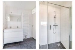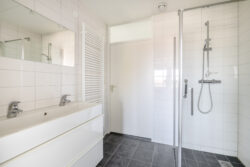 Het appartement beschikt over twee comfortabele slaapkamers. De master bedroom is uitgerust met airconditioning, wat zorgt voor een aangenaam binnenklimaat, het hele jaar door. De badkamer is volledig betegeld en voorzien van een inloopdouche, dubbele wastafel en designradiator. Daarnaast is er een separaat toilet aanwezig.