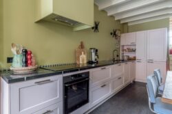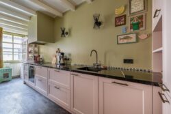 Wanneer je binnenstapt word je direct omarmd door de warme en sfeervolle keuken. Een plek waar koken en samenzijn moeiteloos samenkomen. De keuken is uitgerust met alles wat je nodig hebt – een kookplaat, afzuigkap, oven, koel-vriescombinatie, vaatwasser en zelfs een Celsius kraan voor direct kokend water. Een heerlijke ruimte om samen te koken, te proeven en te genieten. Vanuit de keuken bereik je ook de toiletruimte.