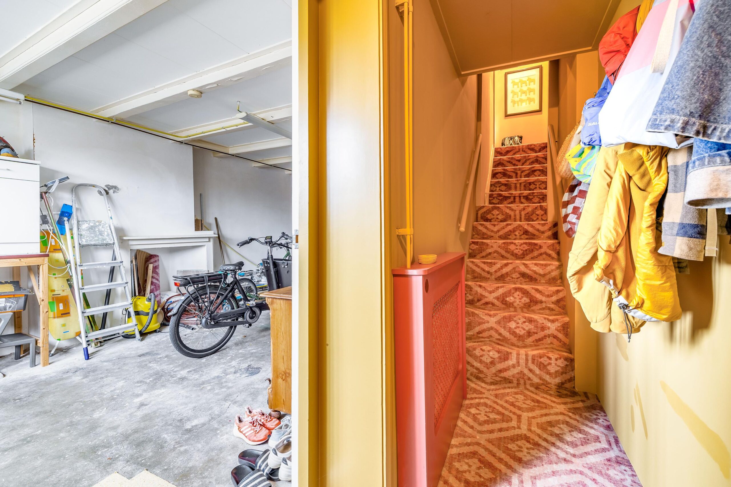 Vanuit de woonkamer heb je toegang tot de garage, gelegen in het onderhuis. Vanaf de achterliggende straat kun je je auto moeiteloos binnen parkeren. Twee openslaande deuren en een gewone deur nodigen je uit om naar binnen te stappen, terwijl de witgoedaansluitingen keurig zijn weggewerkt. Een praktische plek waar gemak en comfort hand in hand gaan.