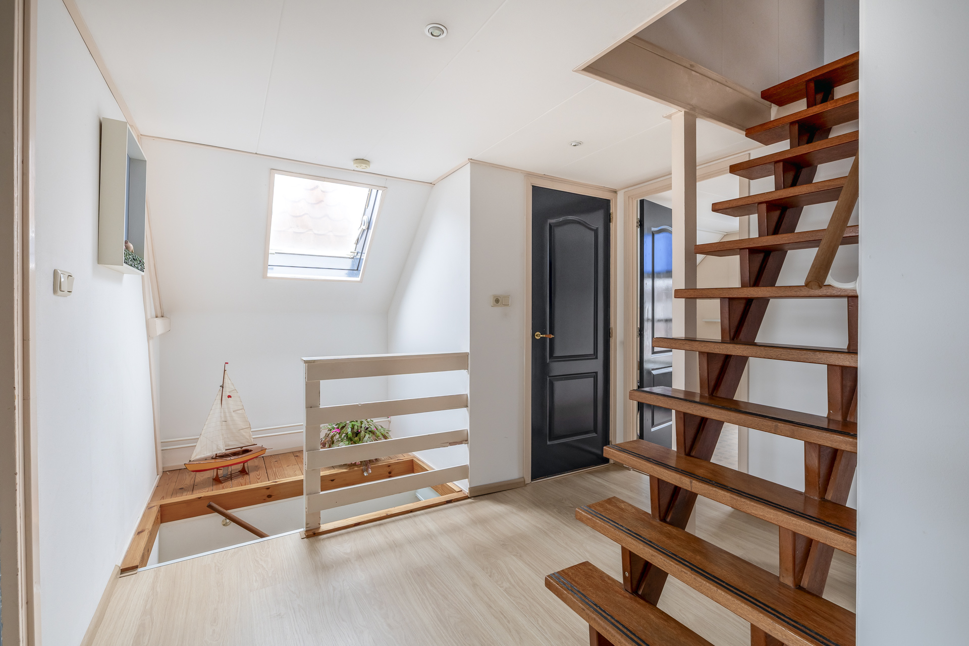 De tweede verdieping biedt verrassend veel ruimte en diverse gebruiksmogelijkheden. Hier bevindt zich onder andere een extra slaapkamer met dakraam. Deze verdieping biedt tevens ruime bergruimte, wat bijdraagt aan het praktische karakter van de woning.
