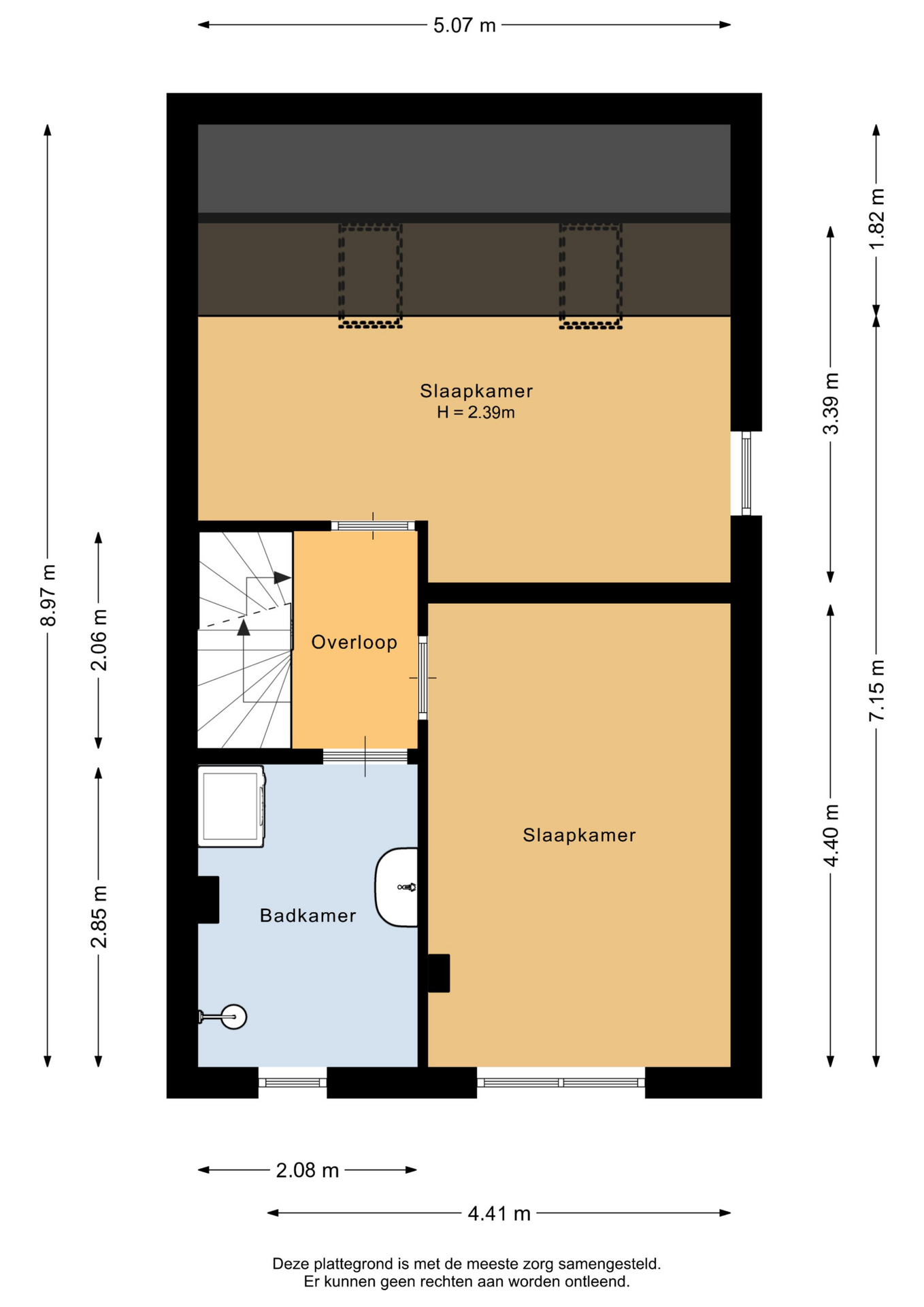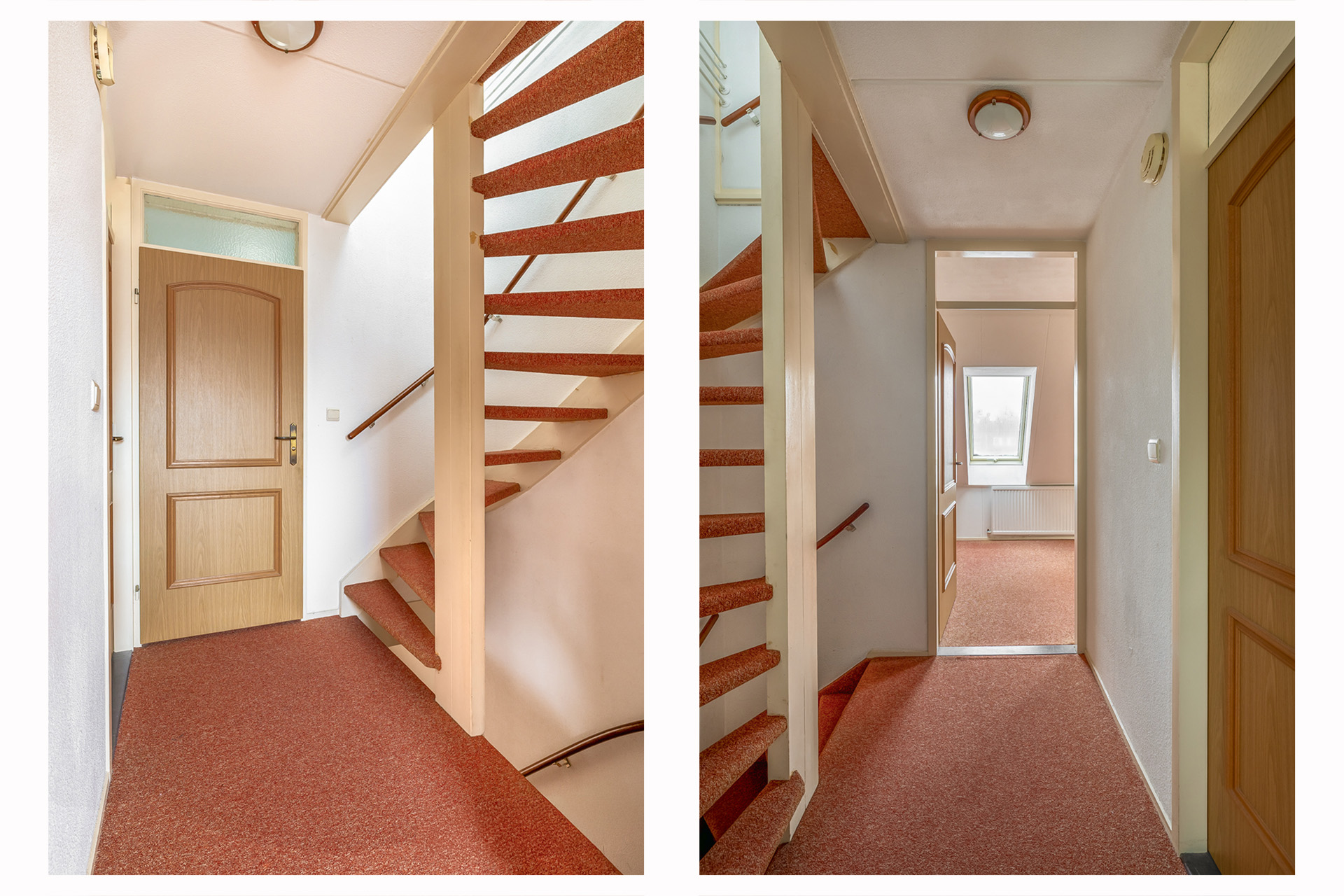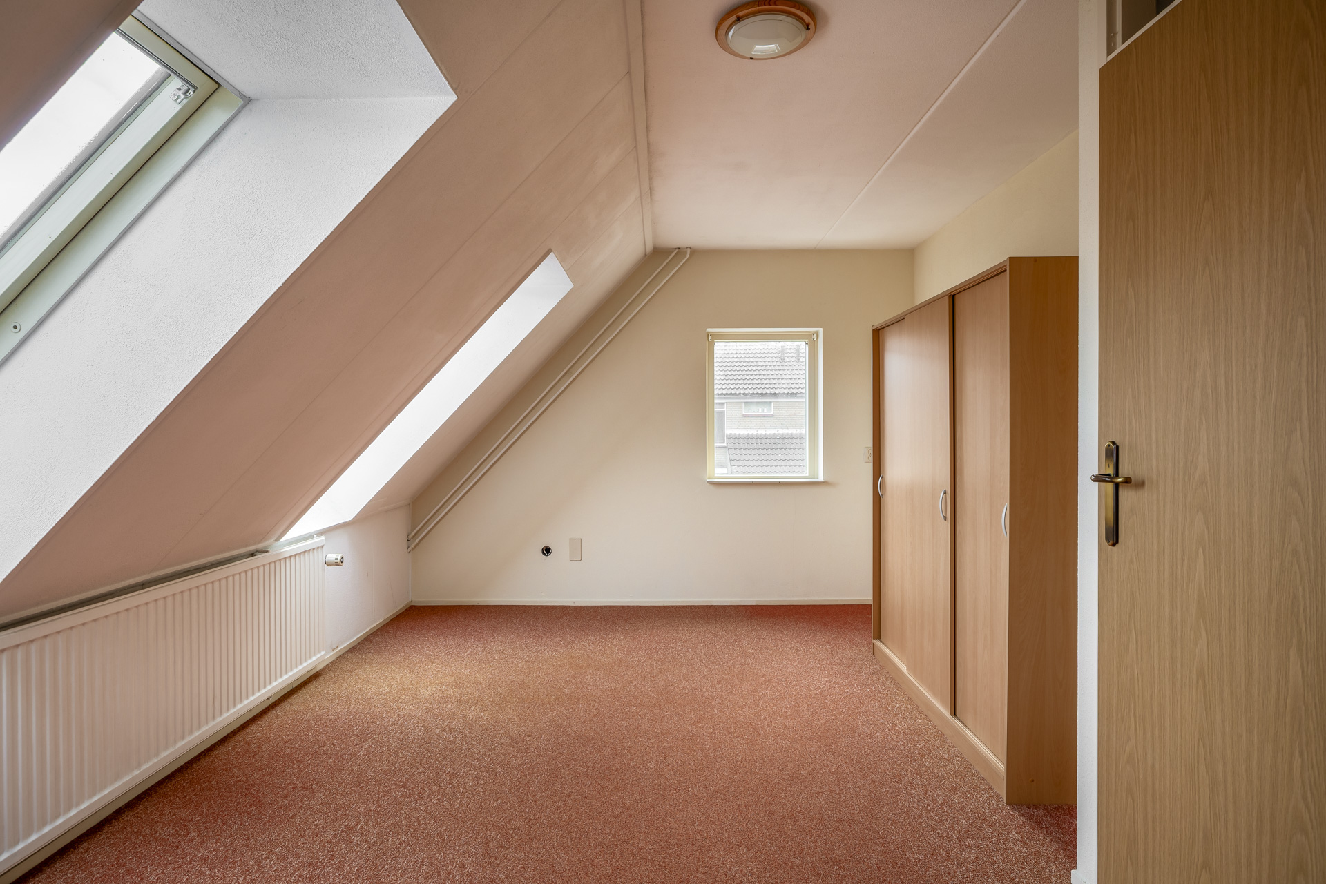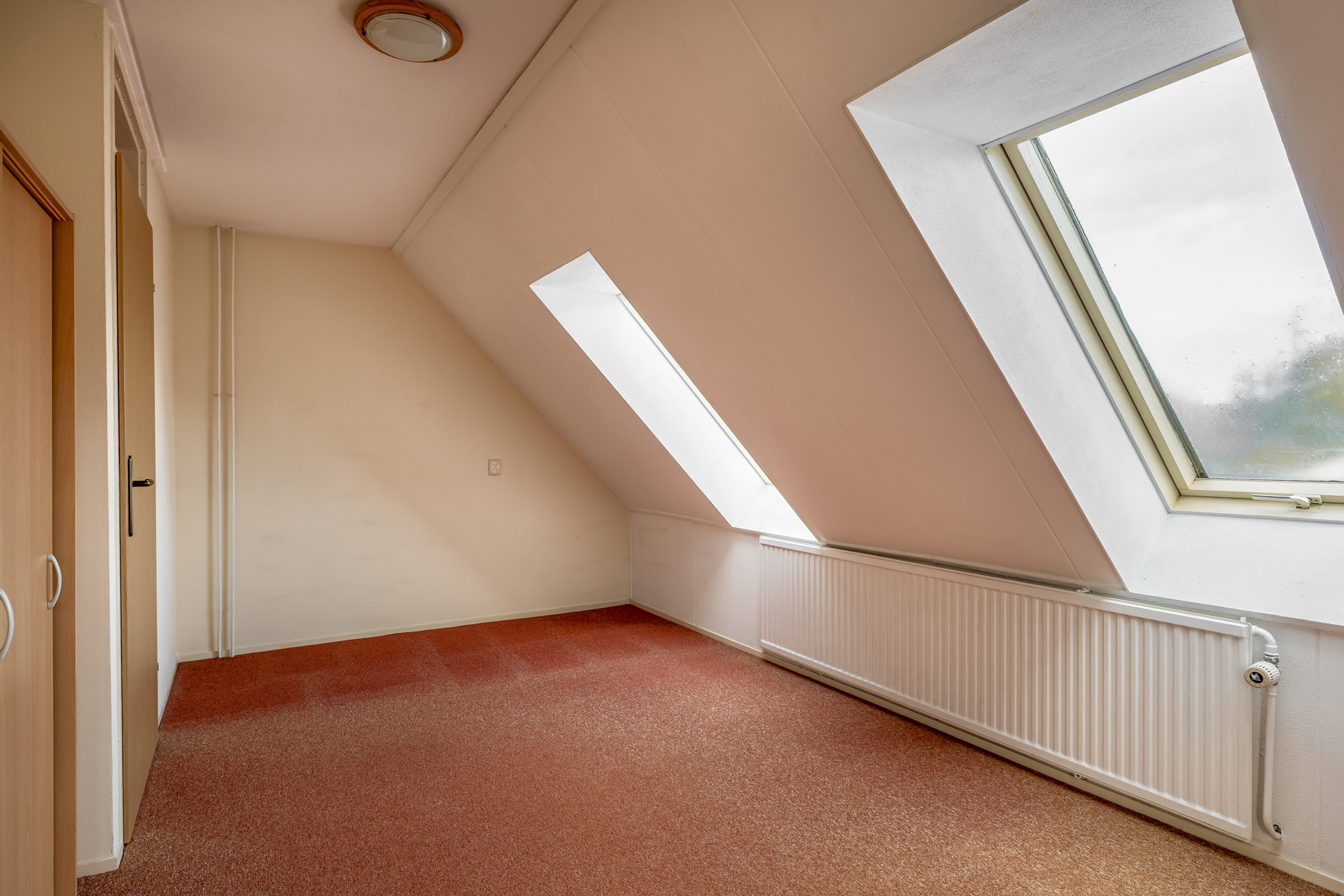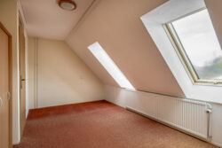 De overloop geeft toegang tot twee slaapkamers en de badkamer. De slaapkamers zijn heerlijk ruim en voorzien van vloerbedekking. Bij de slaapkamer aan de achterzijde zorgen twee dakramen voor extra lichtinval. De geheel betegelde badkamer is voorzien van een douche, een wastafel, een designradiator en de witgoedaansluitingen.