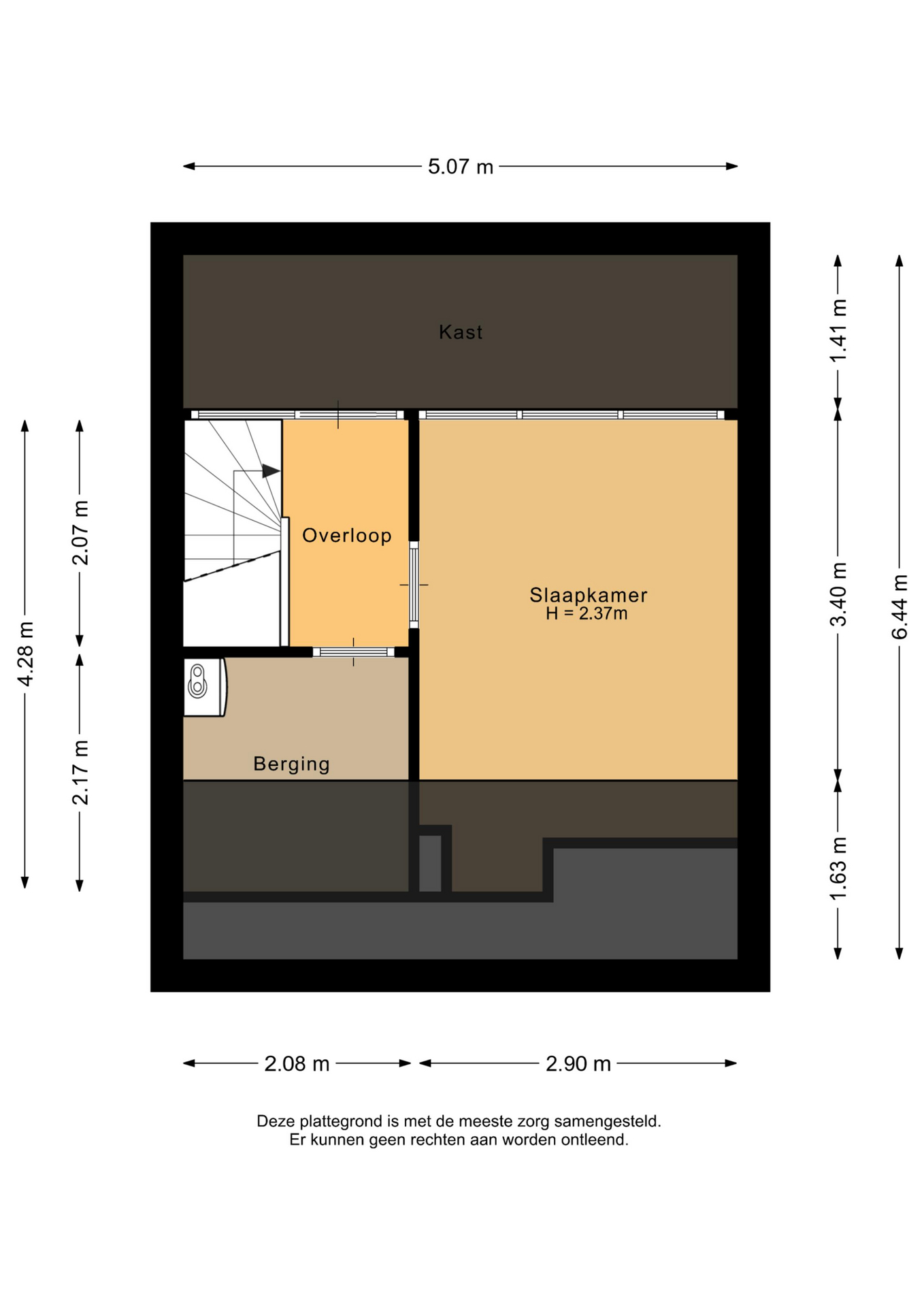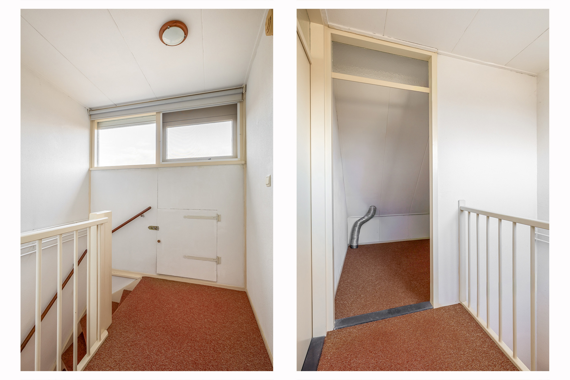 De overloop geeft toegang tot een berging onder het schuine dak, een ruime berging met daarin de CV-ketel en de derde slaapkamer.
