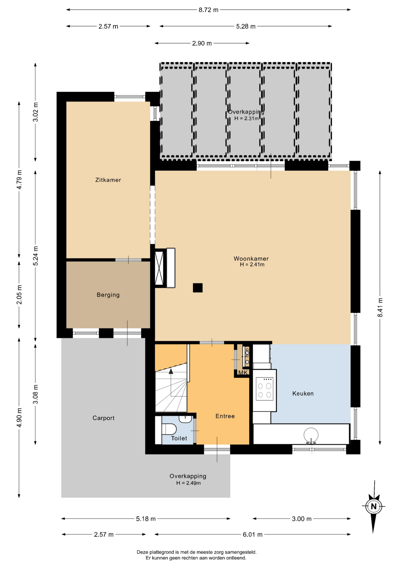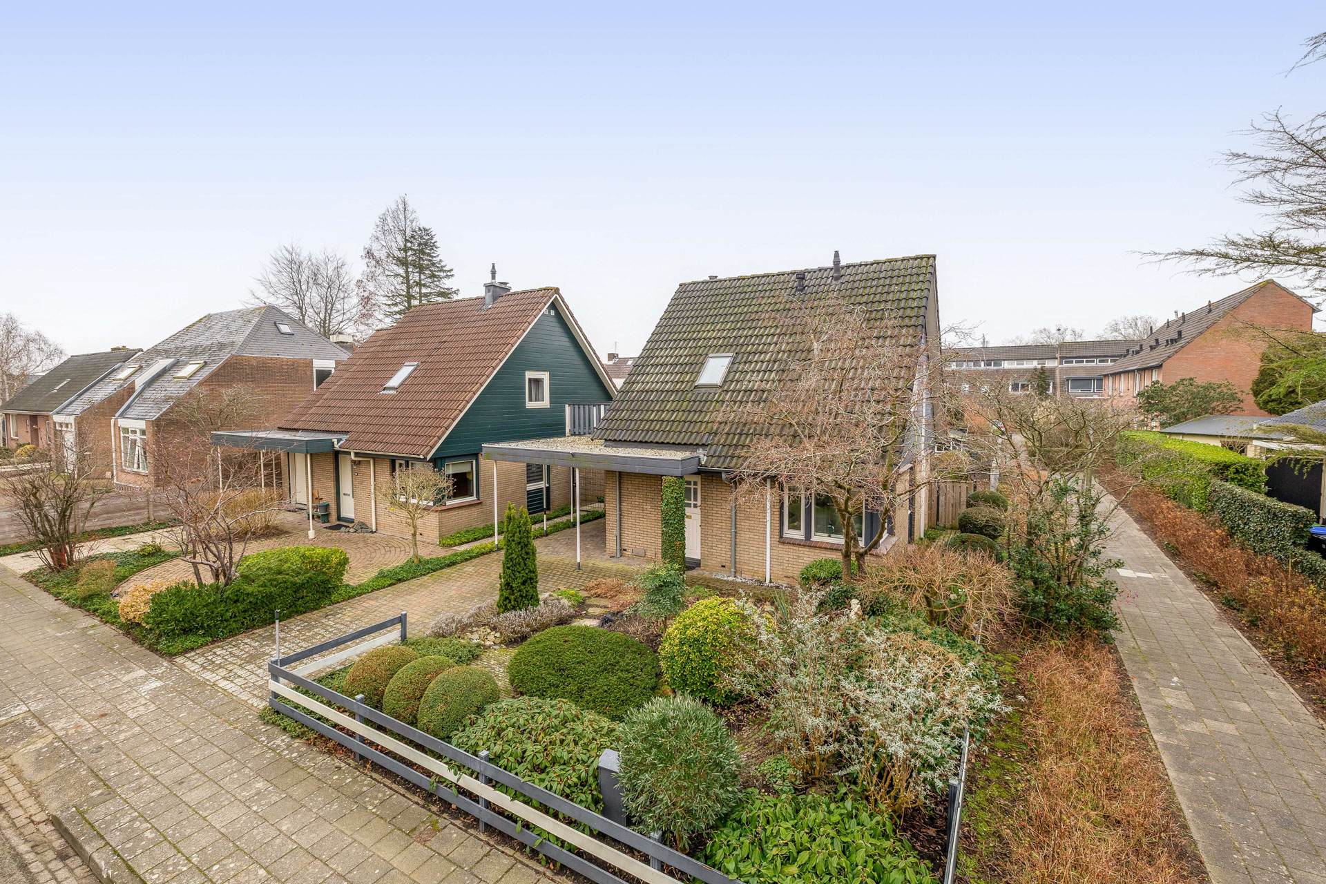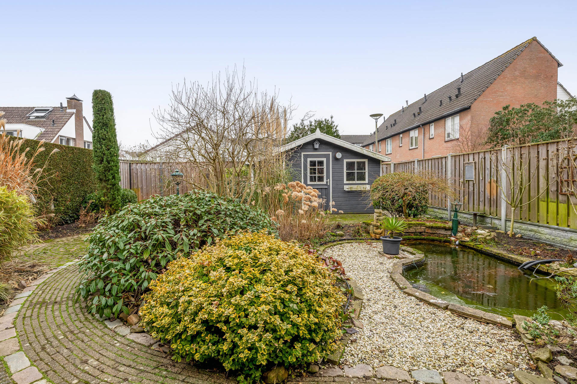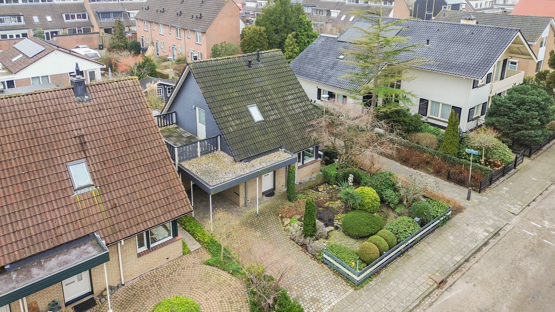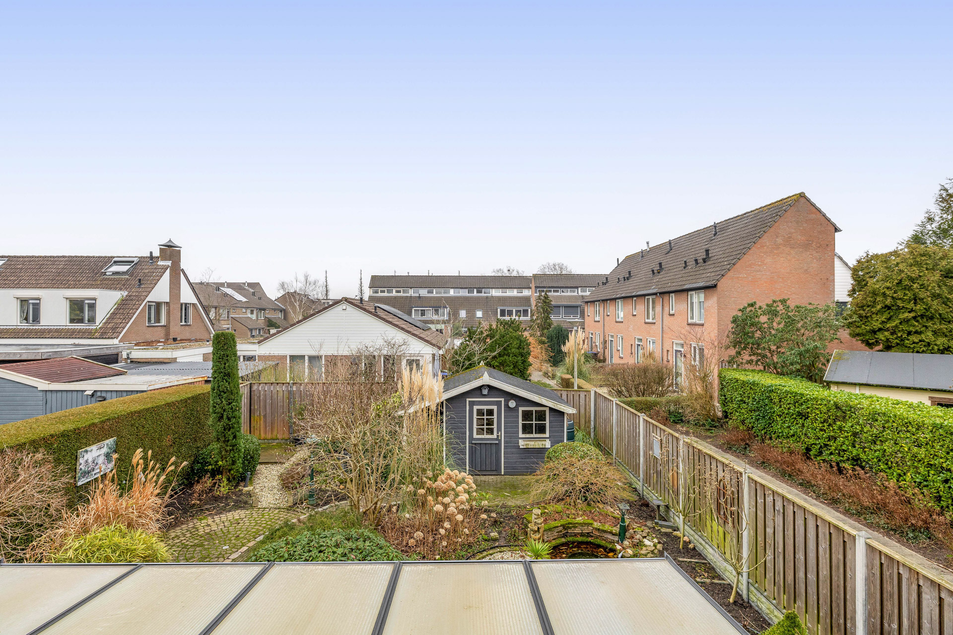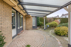 Aan de voorzijde van de woning bevindt zich een oprit met carport, geschikt voor het parkeren van meerdere auto’s op eigen terrein. De zijtuin is via een poort afgesloten en biedt toegang tot de achtertuin, wat zorgt voor privacy en een prettig gevoel van beslotenheid. De achtertuin is gunstig gelegen op het zonnige zuiden en speels ingedeeld. Aangrenzend aan de woning bevindt zich een overkapping, ideaal voor lange dagen en ontspannen avonden buiten. Achter in de tuin staat een praktische berging voor extra opslag. Een heerlijke buitenruimte waar zon, rust en woonplezier samenkomen.
