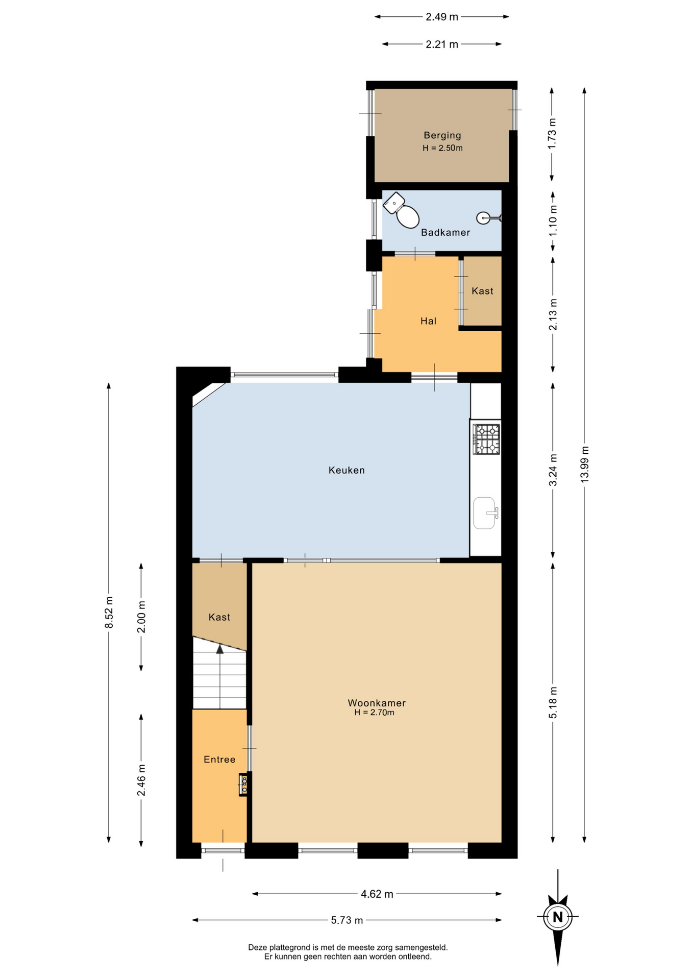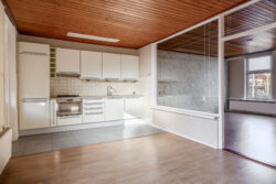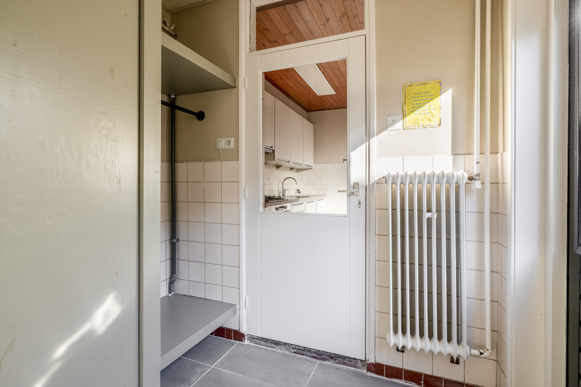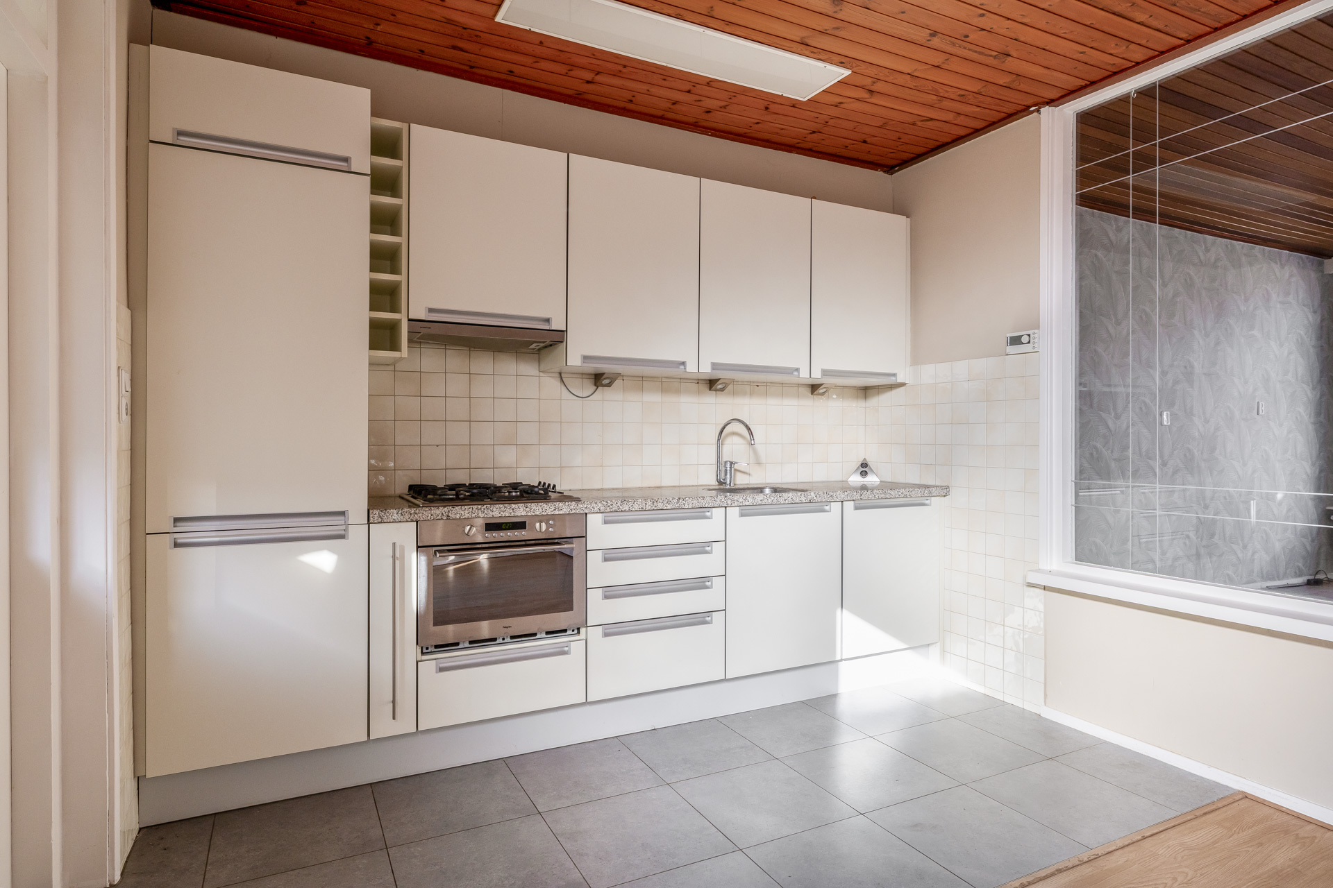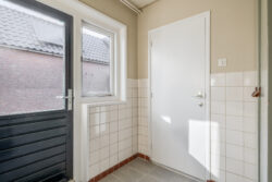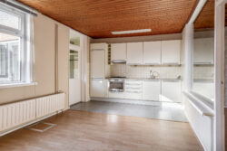 Via de entreehal stap je de woonkamer binnen. Een fijne leefruimte met een warme basis en mogelijkheden om hier een comfortabele woonplek te creëren. Vanuit de woonkamer bereik je de ruime keuken. Dankzij de prettige lichtinval is dit een aantrekkelijke plek waar je een gezellige woonkeuken kunt realiseren, een ruimte waar koken en samenzijn samenkomen. Via de keuken kom je in een tussenhal. Aansluitend bevindt zich de badkamer met douche en toilet en toegang naar de achtertuin.