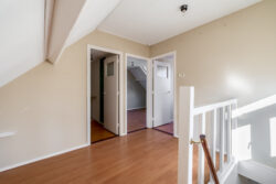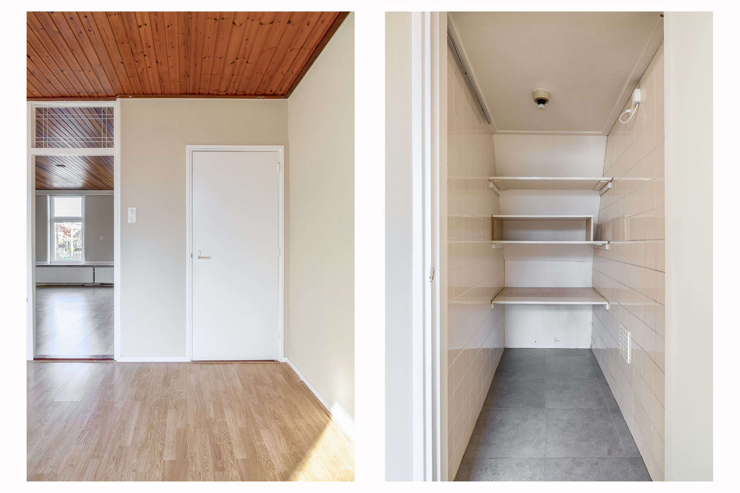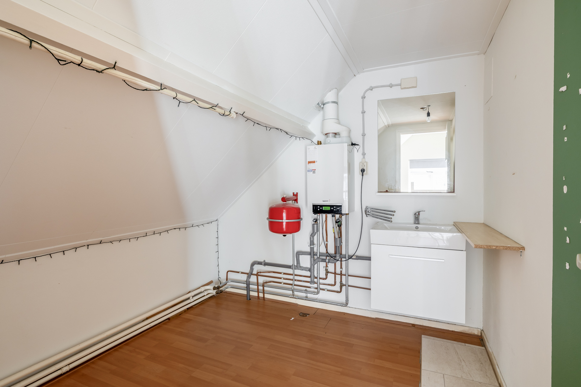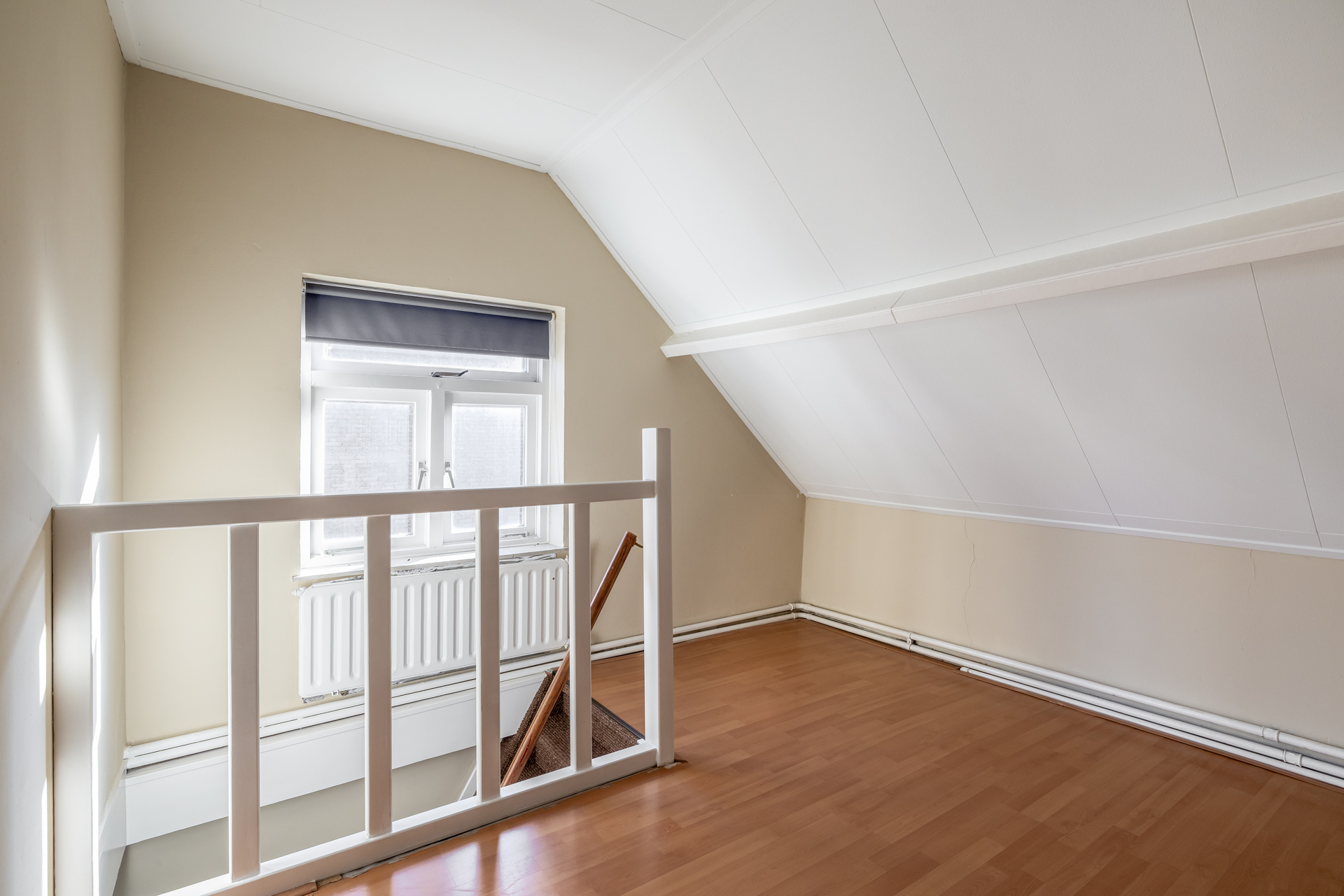Op de eerste verdieping bevinden zich twee slaapkamers. Beide kamers beschikken over een dakkapel, waardoor er extra ruimte en een aangename lichtinval ontstaat. Daarnaast is er een praktische berging waar de CV- ketel is geplaats en een wastafel is gerealiseerd. Een ideale ruimte voor extra opslag en functionaliteit.