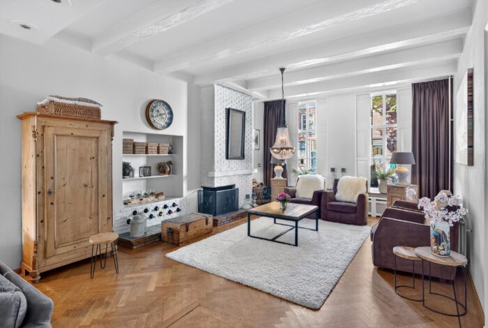 Wanneer u de Voorstraat oprijdt, voelt u de rijke historie van deze straat met zijn vele authentieke panden – waaronder deze prachtige woning. Bij binnenkomst komt u in de lichte entreehal, die toegang geeft tot de sfeervolle woonkamer. Het balkenplafond en de open haard maken het hier heerlijk comfortabel en uitnodigend. Vanuit de woonkamer bereikt u via een tweede hal de open keuken met eetgedeelte. In deze tweede hal is er ook toegang tot de toiletruimte. De landelijke keuken is knus en licht, mede dankzij het deel dat in de serre is geplaatst, en biedt uitzicht op de sfeervolle achtertuin. De keuken is voorzien van een spoeleiland en moderne apparatuur: gasfornuis, afzuigkap, combi-oven, koelkast, vriezer en vaatwasser. De tegelvloer sluit perfect aan bij de warme uitstraling van de keuken en het achterste deel van de keuken is voorzien van vloerverwarming. Grenzend aan de keuken vindt u de eetkamer – een fijne plek om met familie of vrienden uitgebreid te dineren, in klein of groot gezelschap.