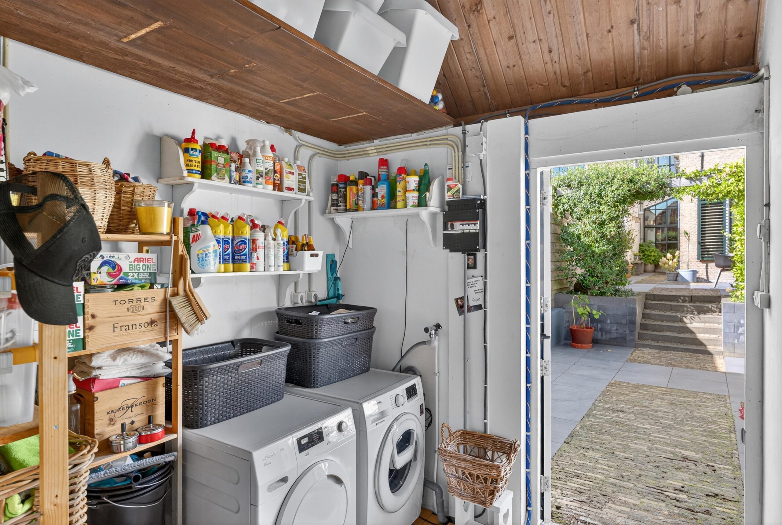 De sfeervolle tuin sluit naadloos aan bij de woning en ligt op het oosten. Goed onderhouden en voorzien van meerdere terrassen, is dit een perfecte plek om het buitenleven te ervaren. Geniet hier van een ontspannen loungeplek na een drukke werkweek, of nodig vrienden uit voor een gezellige borrel. Achterin de tuin staat een stenen berging/garage, bereikbaar zowel vanuit de tuin als via de achterliggende straat. Met de twee openslaande deuren aan de straatzijde kunt u er zelfs uw auto veilig parkeren. De berging is bovendien voorzien van witgoedaansluitingen en een vliering, ideaal voor extra opslag.