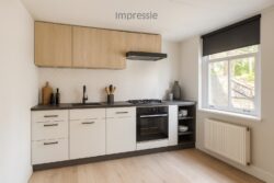 Middels de entreehal aan de voorzijde is de woonkamer toegankelijk, welke zich kenmerkt door het knusse balkenplafond en de schouw. Achter de woonkamer is de keuken gelegen, voorzien van een keukenblok met kookplaat en afzuigkap. Via een tweede hal kom je in de achtertuin en is de aan de achterzijde gelegen badkamer bereikbaar. De badkamer is volledig betegeld en voorzien van een inloopdouche, toilet en wastafelmeubel.