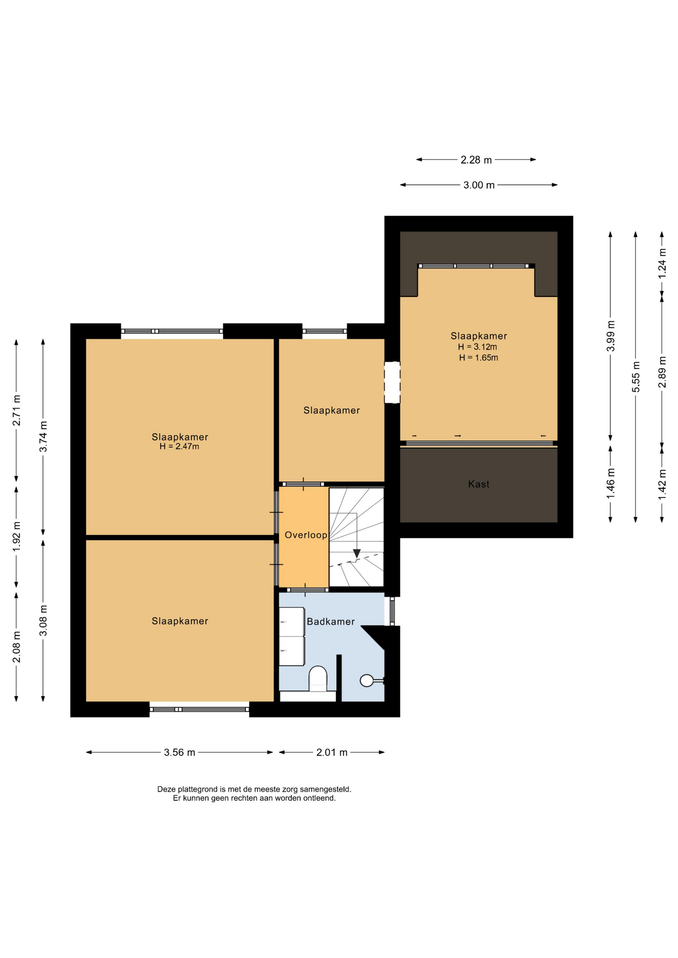 De overloop geeft toegang tot drie slaapkamers en de badkamer. De slaapkamers zijn voorzien van laminaat en/of vloerbedekking. De ramen zorgen voor veel lichtinval. De masterbedroom, is opgedeeld in twee ruimtes, voor de masterbedroom bevind zich een kleinere kamer wat is voorzien van laminaat. De grote kamer is zeer ruim en voorzien van vloerbedekking, aan de zijkant bevindt zicht een grote schuifkast. De geheel betegelde, zeer royale badkamer is voorzien van een inloopdouche, een toilet, een dubbele wastafel met badmeubel, een designradiator, inbouwspots en elektrische vloerverwarming.