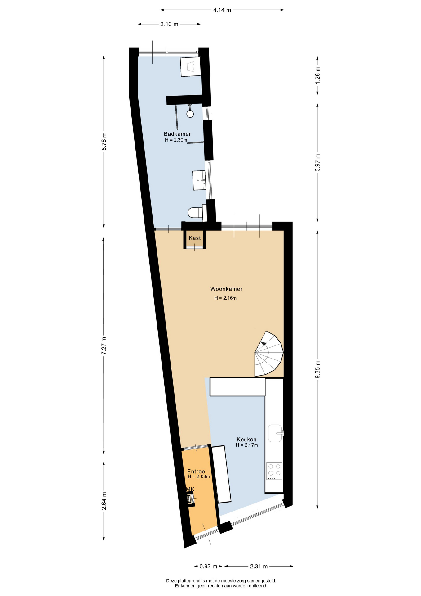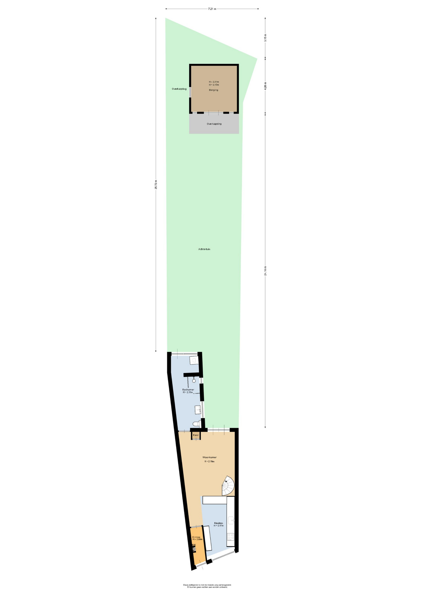 De entreehal geeft toegang tot de woonkamer met open keuken. De woonkamer, gelegen aan de achterzijde, heeft openslaande deuren naar de achtertuin en daardoor ook veel lichtinval. De keuken beschikt over een bar waar je gezellig aan kunt zitten. De keuken zelf is voorzien van diverse apparatuur zoals, kookplaat, afzuigkap, oven, koelkast en een heetwaterkraan. Aan de achterzijde grenst de woonkamer aan de badkamer. De badkamer is geheel betegeld en voorzien van een inloopdouche, wastafelmeubel, toilet en wasmachine-aansluiting. Vanuit de badkamer loop je zo de achtertuin in. De woonkamer en keuken beschikken over vloerverwarming en het balkenplafond in deze ruimtes creëert een fijne sfeer.