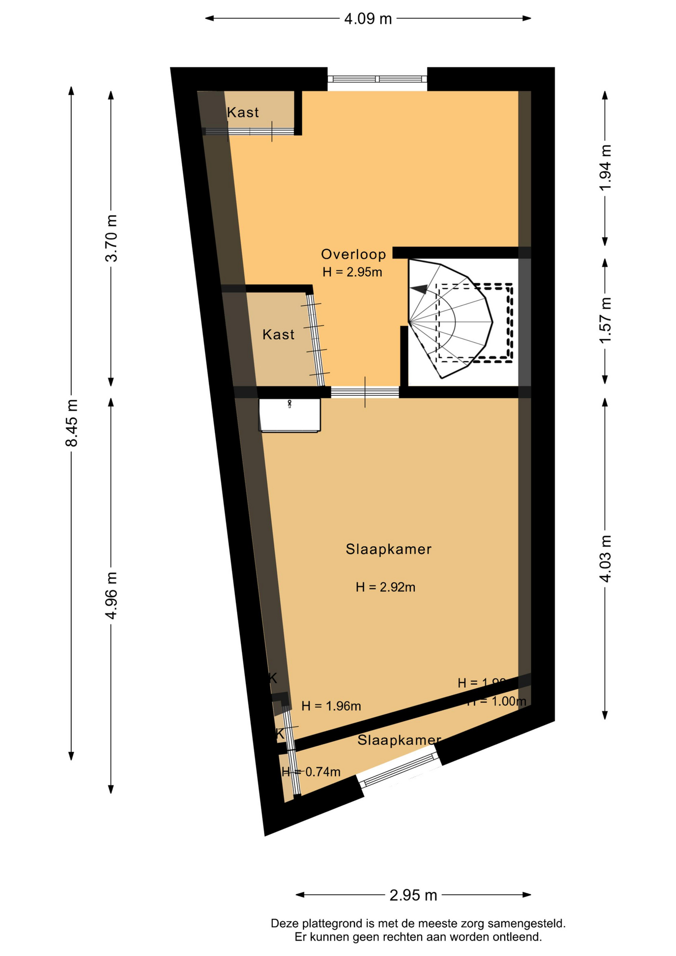 Middels een trap vanuit de woonkamer kom je op een ruime overloop. Hier is voldoende ruimte om bijvoorbeeld een zitje te creëren met uitzicht over de achtertuin. Ook op deze verdieping zijn de authentieke balken behouden en zichtbaar. De slaapkamer, gelegen aan de voorzijde, beschikt over een wastafel.