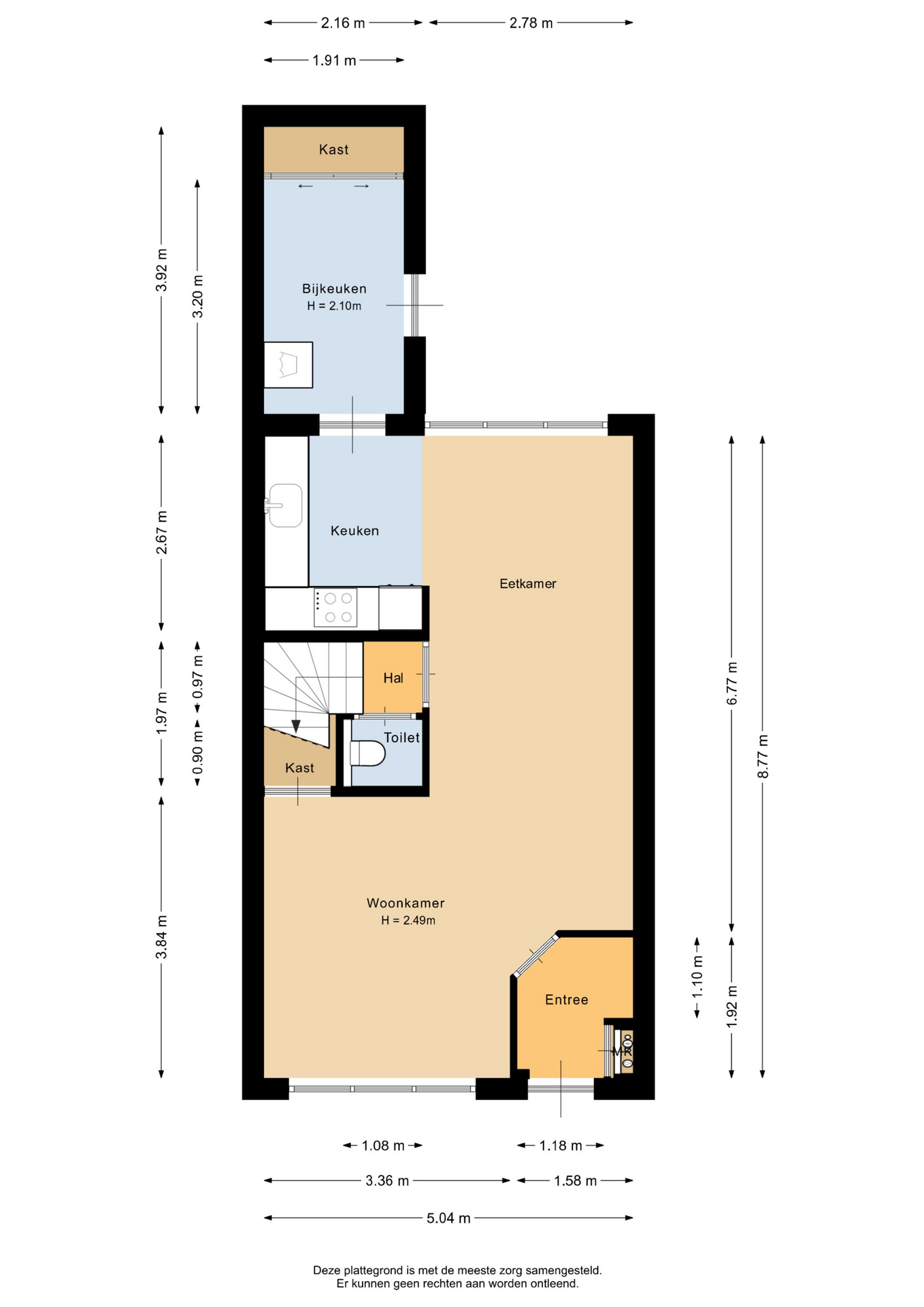 De entreehal, met meterkast, geeft toegang tot de woon-/eetkamer en de keuken. De woonkamer, met houten vloer en vaste kast, is aan de voorzijde van de woning gelegen en straalt sfeer uit. De grote raampartijen zorgen voor veel lichtinval. In het verlengde van de woonkamer is de eetkamer gesitueerd. De ruime eetkamer geeft toegang tot de open keuken en een deur naar de hal met trapopgang. De moderne hoekkeuken is voorzien van een kookplaat met geïntegreerde afzuigkap, oven en koelkast. Vanuit de keuken is de achtergelegen bijkeuken toegankelijk. De bijkeuken is voorzien van een vaste kast, de witgoedaansluitingen en de deur naar de tuin. In de hal zijn het toilet en de trapopgang naar de eerste verdieping.