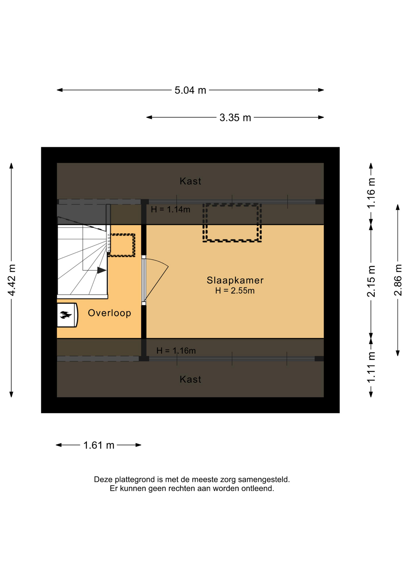 De tweede verdieping is ook met een vaste trap bereikbaar. De overloop, met CV-ketel en dakraam, geeft toegang tot de vierde slaapkamer. De ruime slaapkamer is voorzien van een laminaatvloer, een groot dakraam en berging onder beide zijden van het schuine dak.