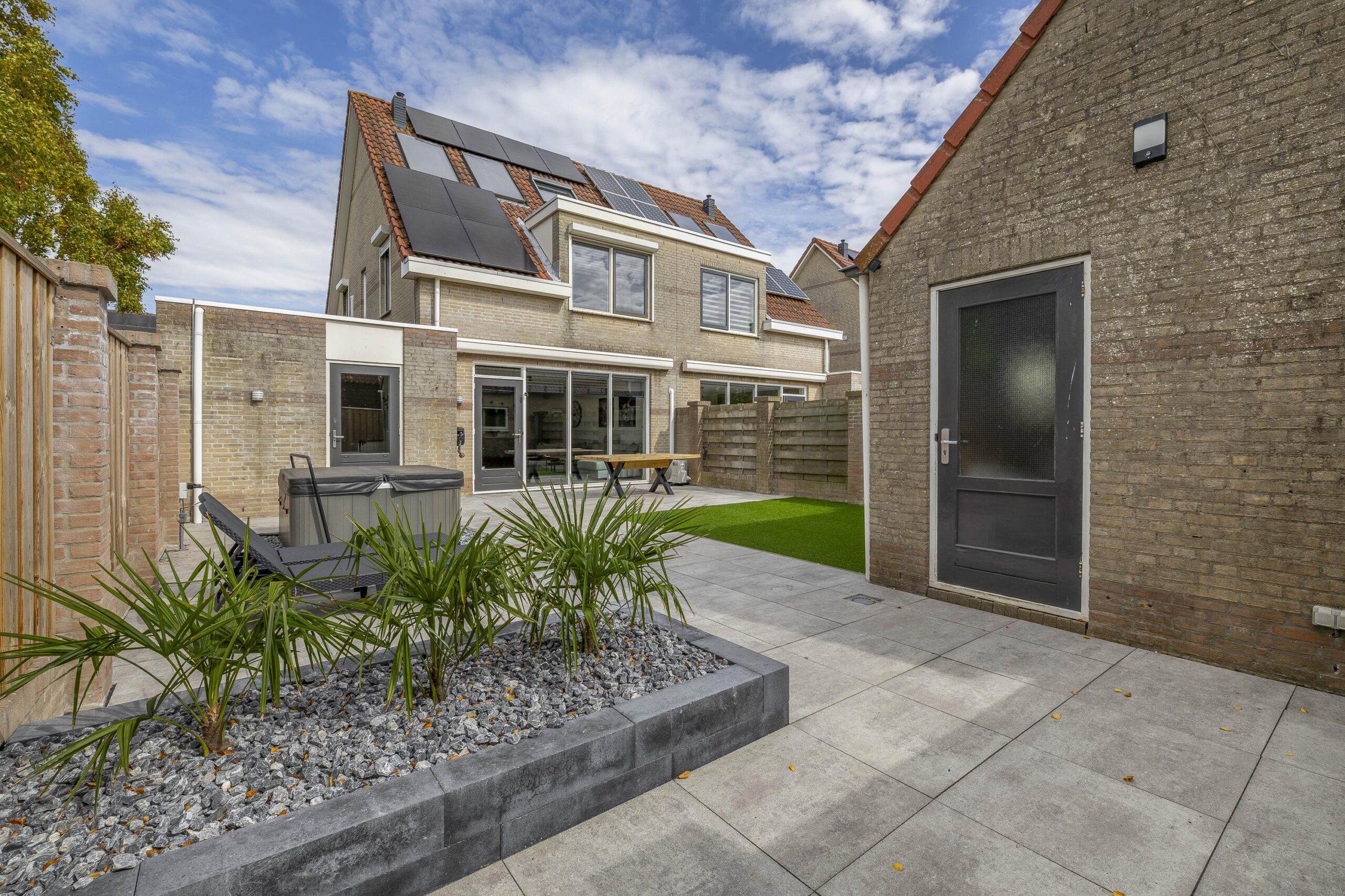 De voorzijde biedt een oprit met ruimte om op eigen terrein te parkeren. Achter het huis ligt een onderhoudsvriendelijke tuin op het zuidwesten: een heerlijke plek om te ontspannen, te borrelen of te dineren met vrienden. Dankzij de schuttingdelen in combinatie met metselwerk geniet je van voldoende privacy. Achterin de tuin vind je een stenen berging én een achterom.