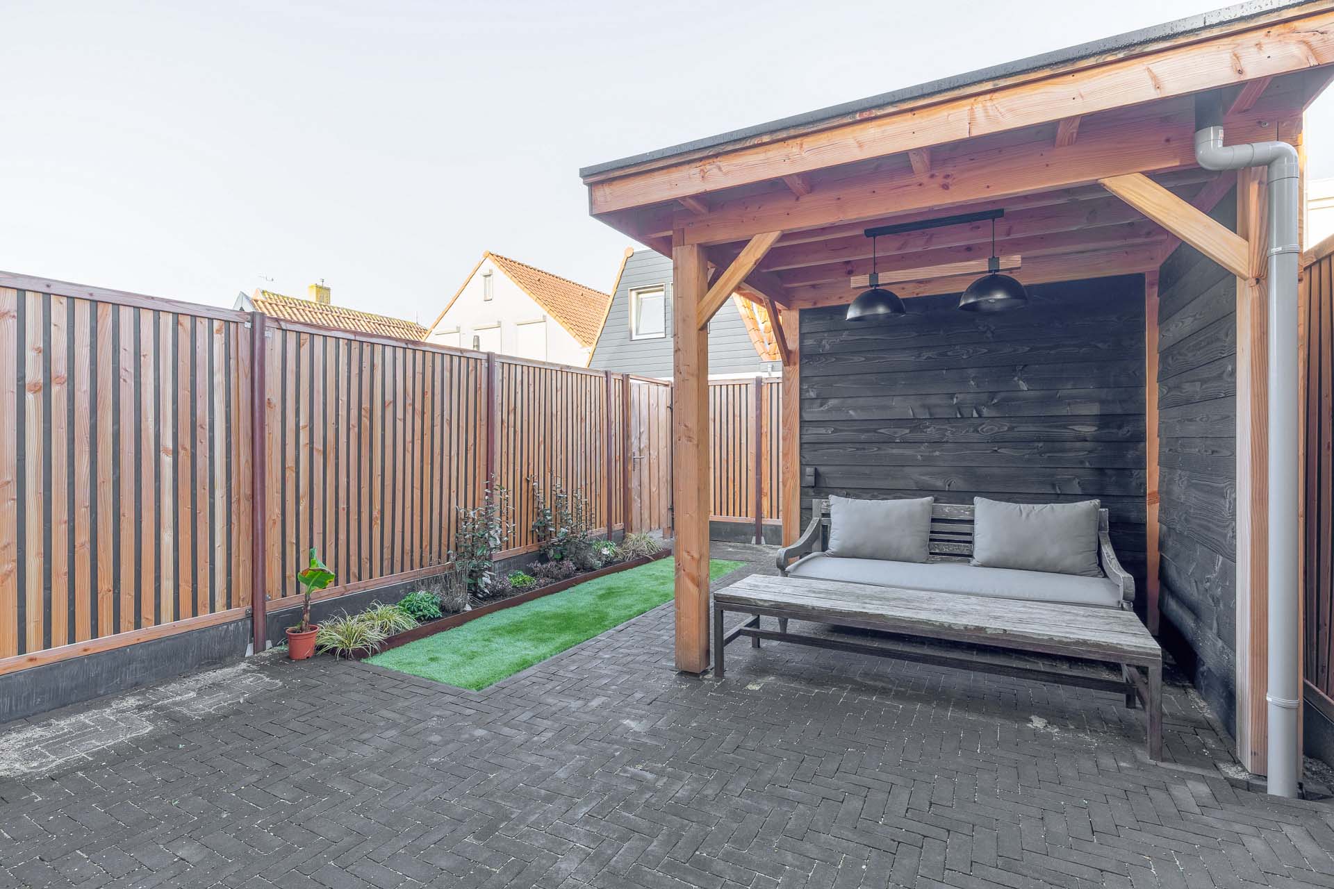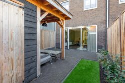 De woning beschikt over een heerlijke achtertuin met overkapping, een verlengstuk van je woonkamer waar binnen en buiten naadloos in elkaar overlopen. In de zomermaanden geniet je hier tot in de late uurtjes van lange avonden, gezelligheid en ontspanning in alle privacy. Aan de overkapping grenst een praktische berging, ideaal voor fietsen en extra opslag. De tuin is bovendien bereikbaar via een achterom, wat zorgt voor optimaal gemak in het dagelijks gebruik.