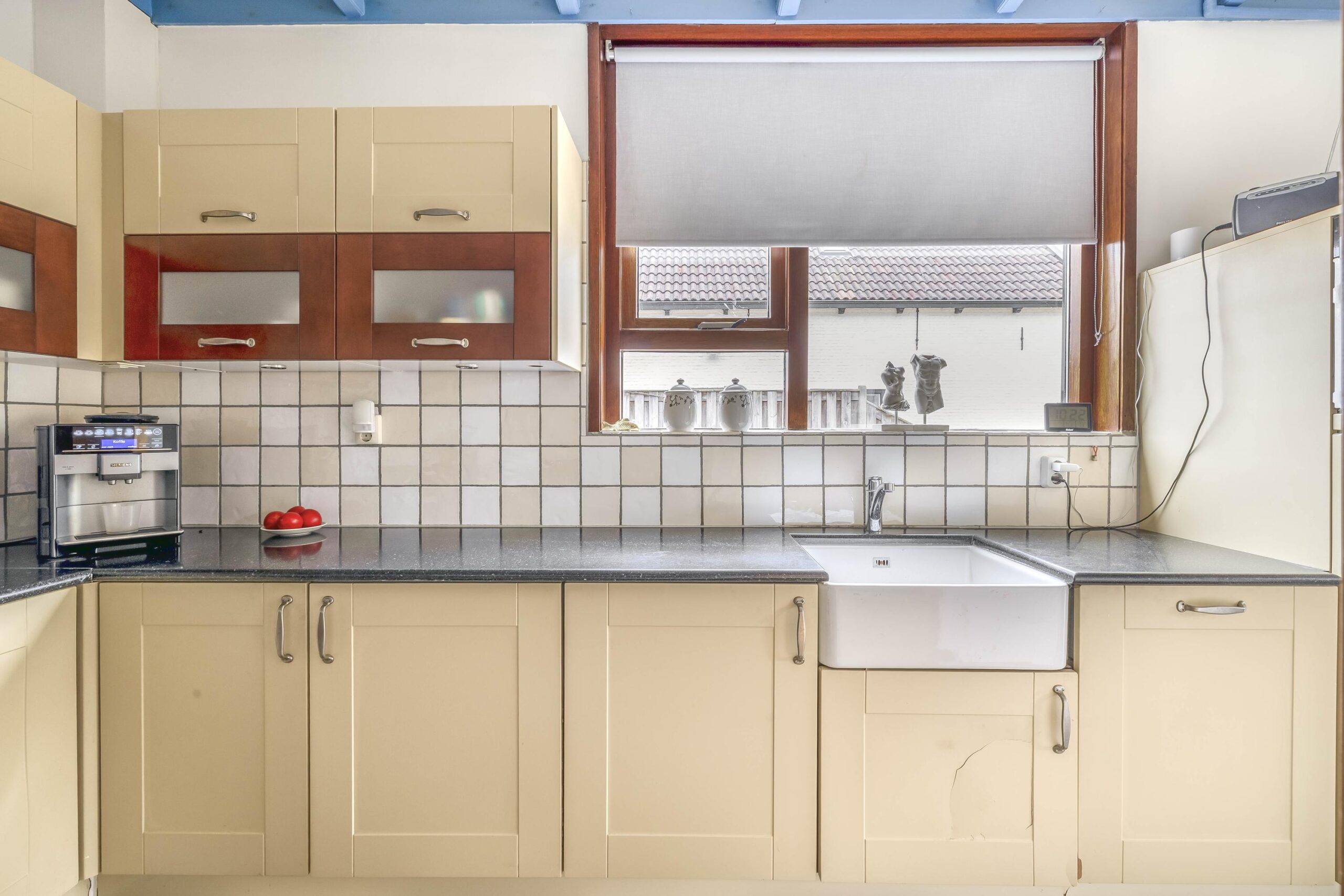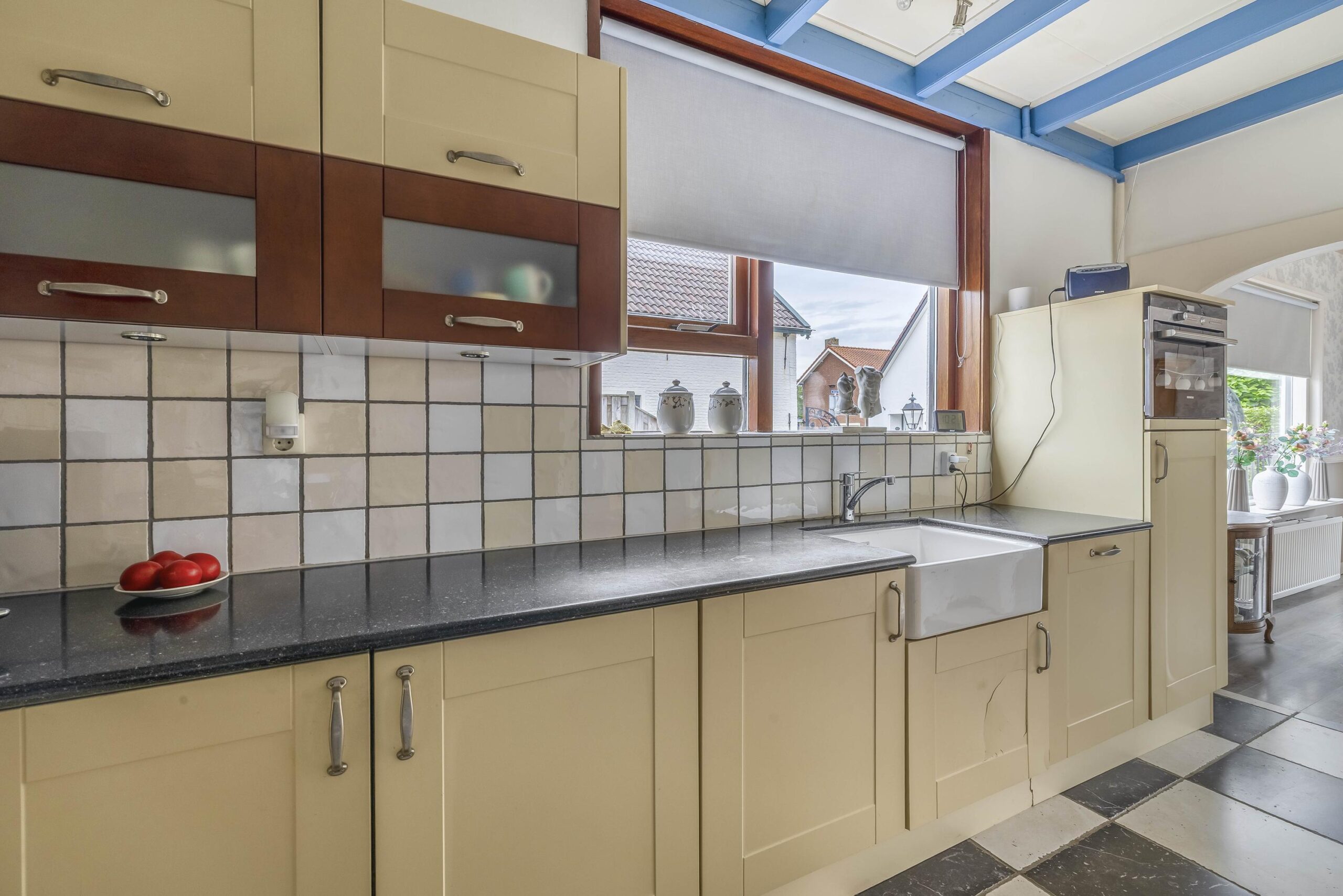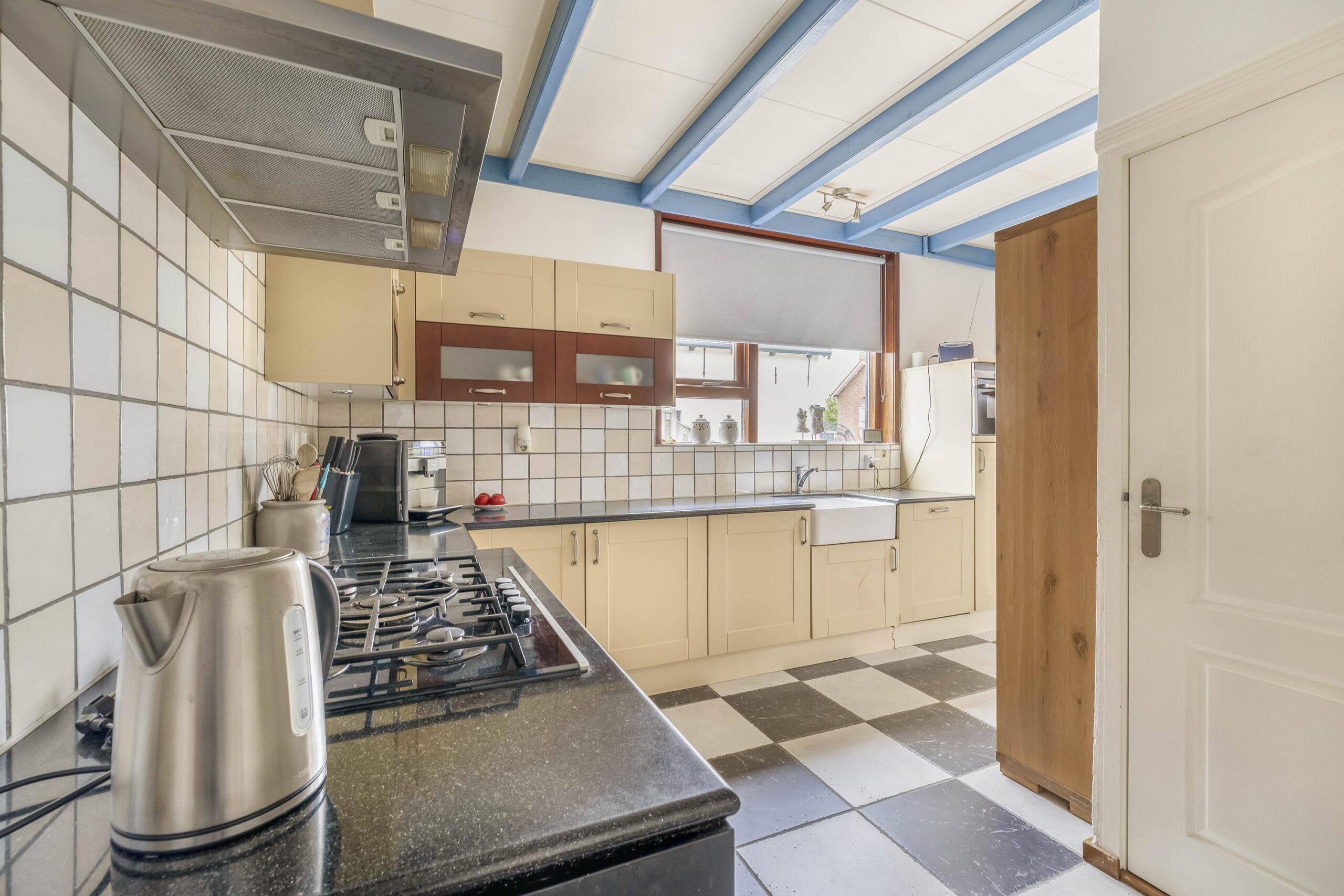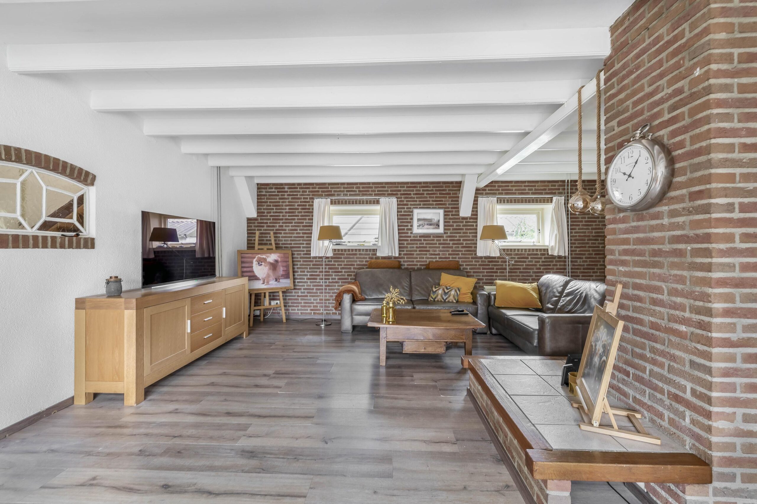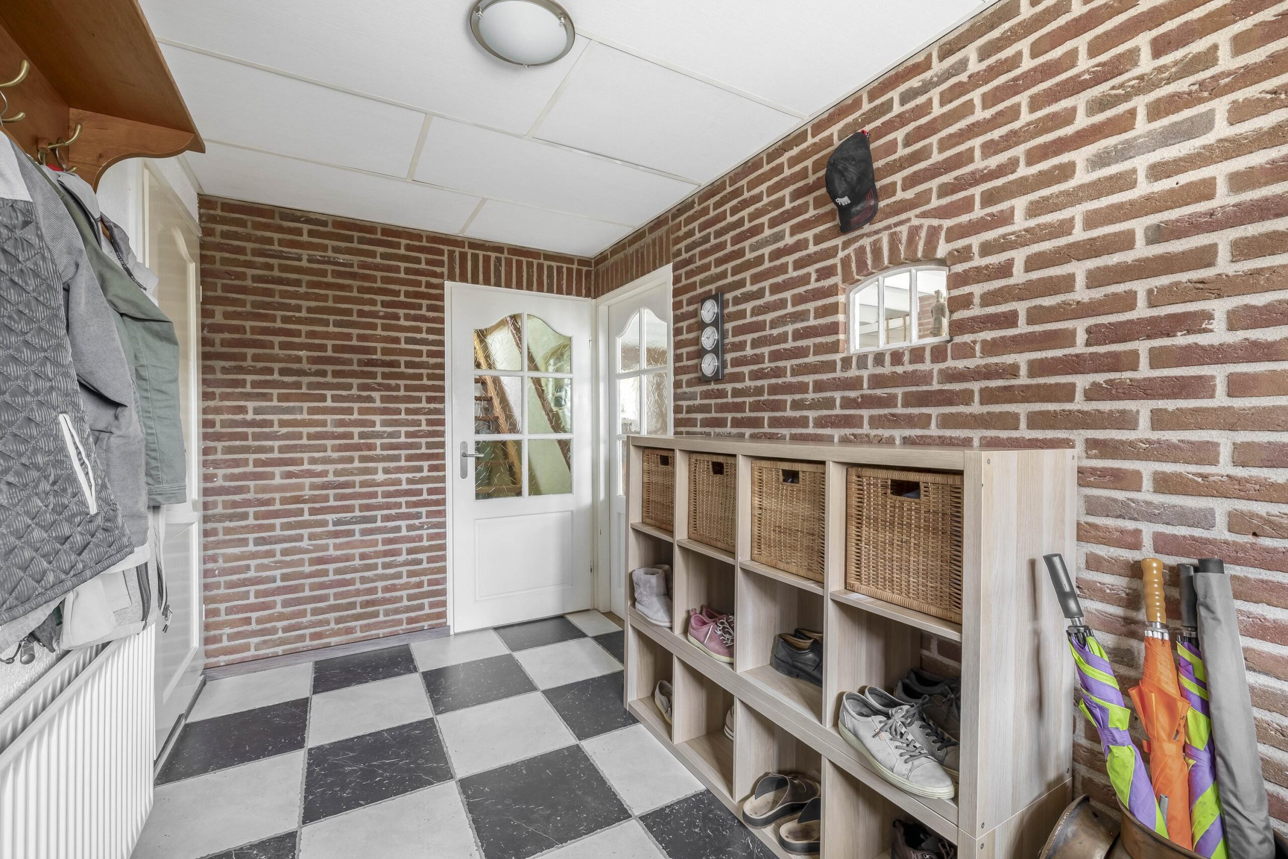 Via de ruime oprit bereikt u de voordeur van deze woning. Vanuit de entreehal stapt u de achterste woonkamer en de landelijke keuken binnen. In de woonkamer zijn de authentieke balken en ramen liefdevol bewaard gebleven. Midden in de ruimte staat de pelletkachel: het warme hart van de kamer, waar het heerlijk vertoeven is tijdens lange avonden. Vanuit de woonkamer loopt u zo de serre in, die nu als opslagruimte wordt gebruikt. Vanuit hier bereikt u binnendoor de achtergelegen garage. De landelijke keuken is volledig uitgerust met apparatuur, waaronder een kookplaat, afzuigkap, combi-oven, koelkast, vriezer en vaatwasser. Vanuit de keuken is er toegang tot de kelder. Via een open doorgang komt u in de eetkamer, een royale plek waar samen dineren een feestje wordt. Aan de voorzijde van de woning vindt u een tweede woonkamer, voorzien van een mooie, authentieke schouw – een ruimte die uitnodigt tot ontspannen momenten in stijl. Vanuit de keuken bereikt u de badkamer, een plek om heerlijk te ontspannen. Deze is compleet uitgerust met een ligbad om in weg te dromen, een ruime inloopdouche met regendouche, een dubbele wastafel, een toilet en een designradiator.