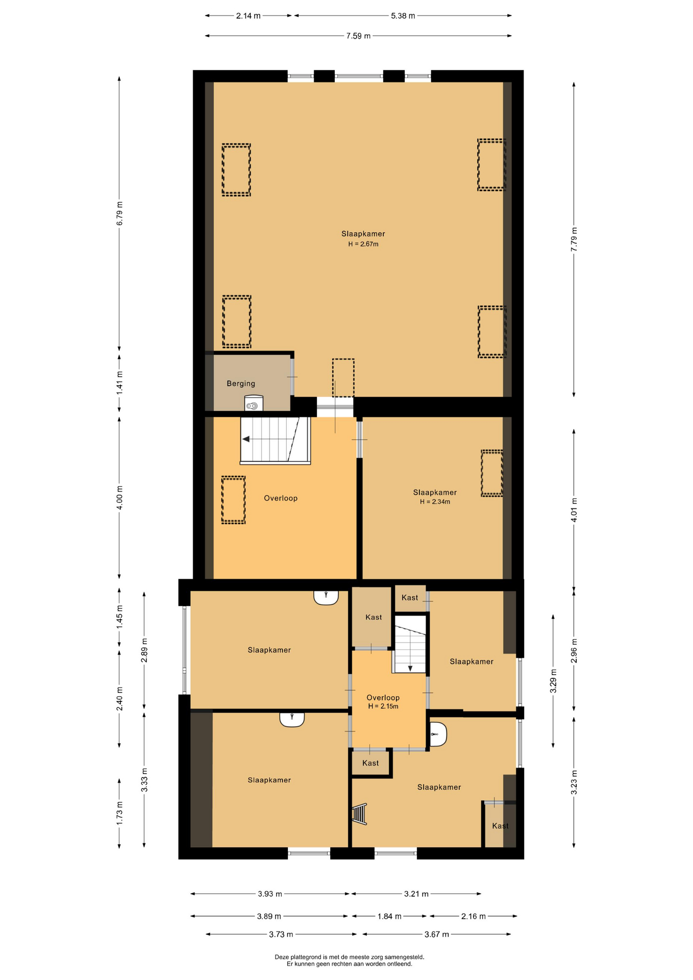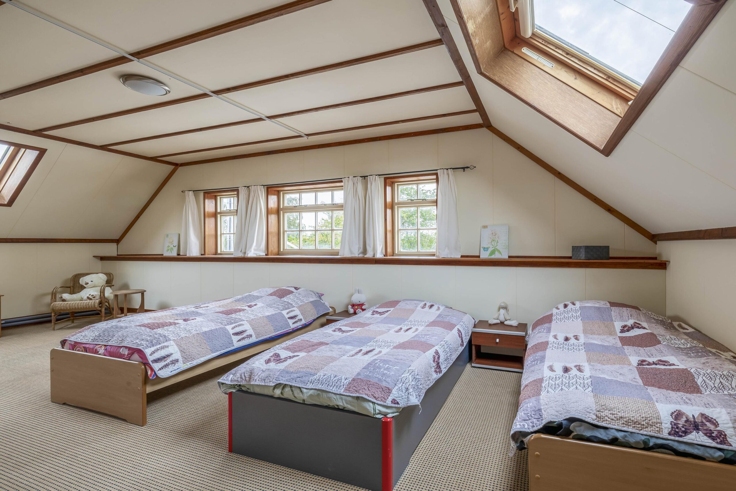 Op de eerste verdieping wachten maar liefst zes slaapkamers, elk met voldoende lichtinval. Drie van de slaapkamers zijn bovendien voorzien van een eigen wastafel – praktisch én comfortabel. De zeer ruime slaapkamer aan de achterzijde biedt volop mogelijkheden om de indeling aan te passen naar uw persoonlijke wensen. Dankzij de twee dakkapellen is er extra leefruimte ontstaan, waardoor de verdieping nog ruimer aanvoelt. Vanuit de voorste slaapkamer leidt een vide naar de zolderverdieping, een ideale plek om spullen netjes op te bergen.