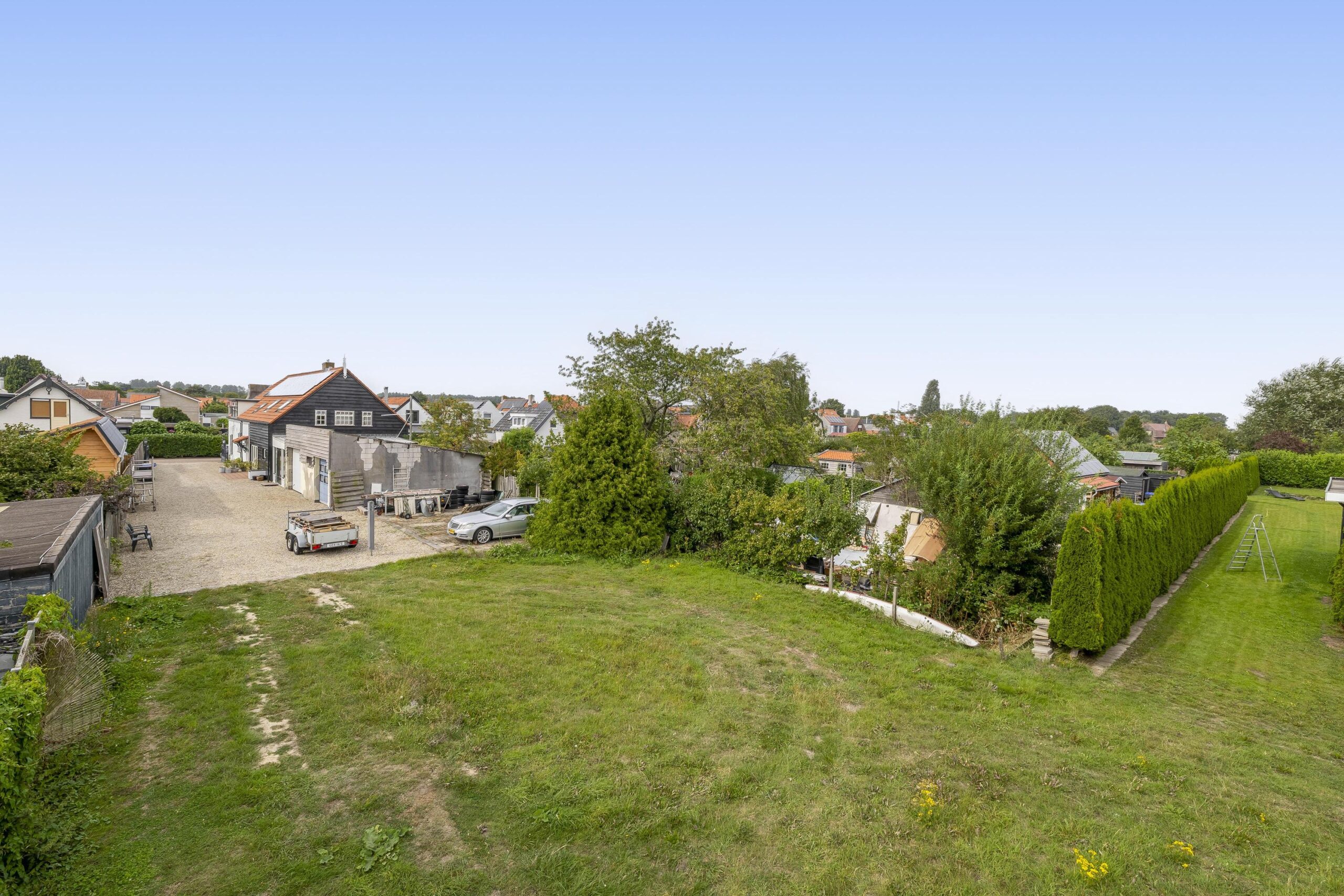 De achtertuin, gunstig gelegen op het zuidoosten en grenzend aan de rustige polder, wacht erop om tot leven gewekt te worden. Dankzij het royale perceel zijn er eindeloze mogelijkheden om hier uw eigen droomplek te creëren – van een zonnig terras tot een groene oase of een speelplek voor kinderen. Direct achter de woning vindt u een aangebouwde garage en achterin de tuin staat een berging. Voor het parkeren van auto’s is volop ruimte, zowel in de garage als op de oprit. Zo geniet u altijd van gemak én privacy op uw eigen terrein.