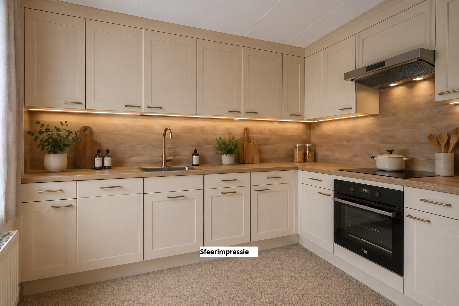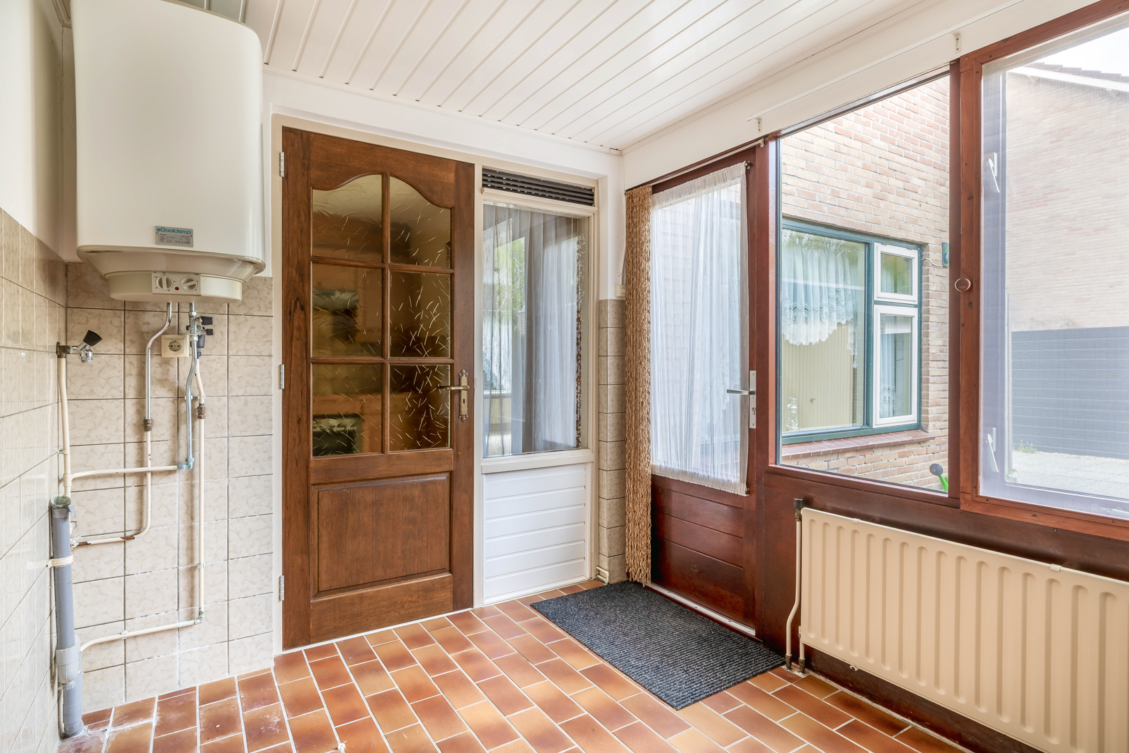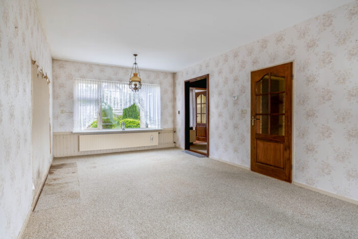 Entree met toegang tot de hal en toilet, waar vandaan de woonkamer en half open keuken bereikbaar zijn. De woonkamer kenmerkt zich door een prettige lichtinval en een functionele indeling met een oppervlakte van circa 26 m². Aansluitend bevindt zich de keuken, compact maar praktisch ingericht en in directe verbinding met de leefruimte, wat zorgt voor een aangename woonbeleving. Vanuit de keuken is tevens de bijkeuken bereikbaar, een praktische ruimte die zich uitstekend leent voor het realiseren van bijvoorbeeld een wasruimte met toegang tot de tuin.