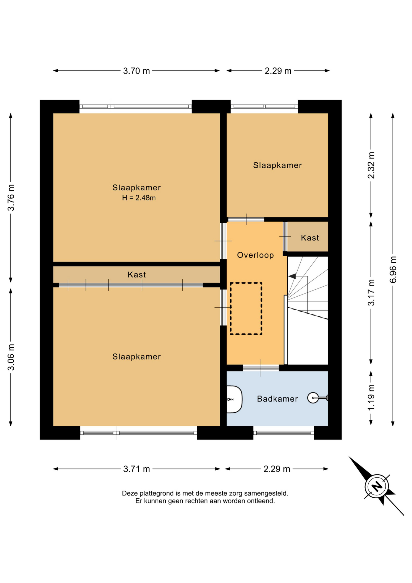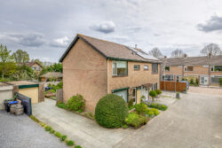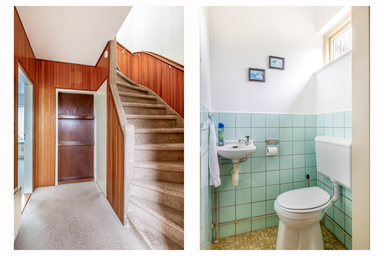 Boven kom je aan bij de overloop die toegang geeft tot drie slaapkamers en de badkamer. De slaapkamers zijn van goed formaat en bieden voldoende mogelijkheden voor een gezin of thuiswerkplek. De badkamer is voorzien van een inloopdouche en wastafel en vormt een nette basis voor eventuele modernisering.