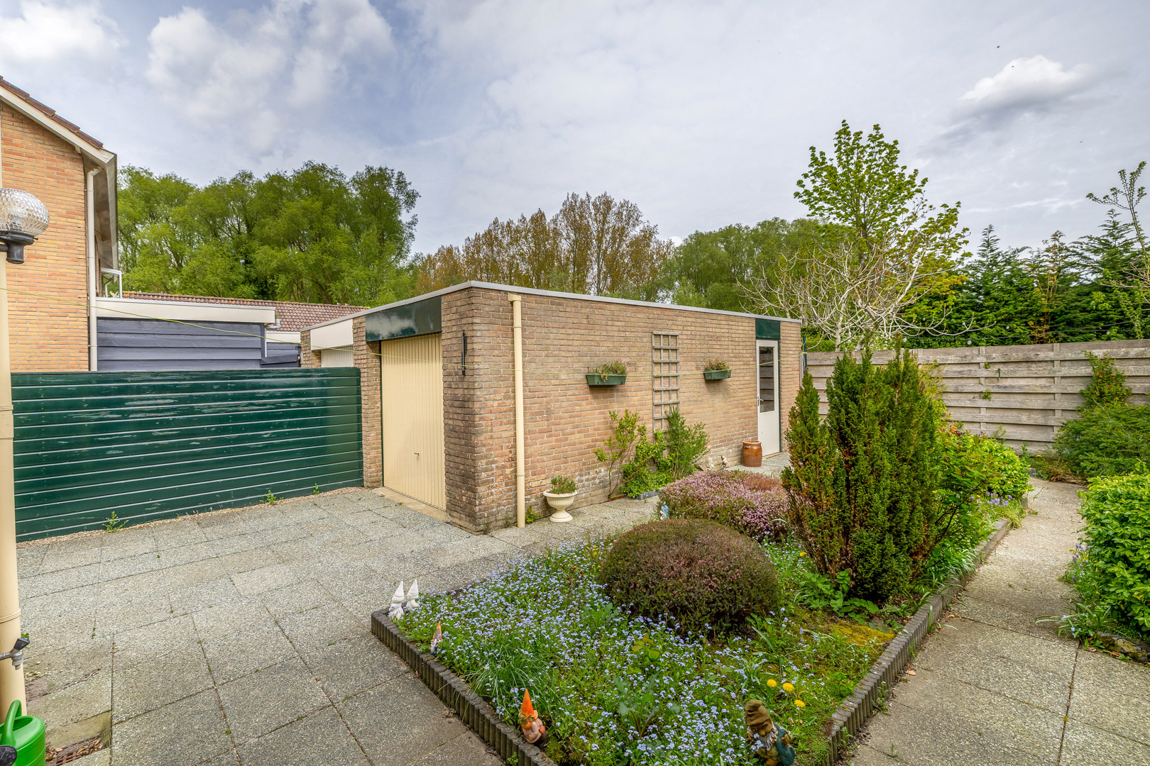 De woning beschikt over een voor-, zij- en achtertuin. De achtertuin is gelegen op het noordwesten, je kunt hier dus optimaal genieten van de middag- en avondzon. De achtertuin is bereikbaar via een achterom. Op het perceel bevindt zich een vrijstaande stenen garage, perfect voor opslag of het stallen van een auto. Parkeren is mogelijk op eigen terrein met ruimte voor meerdere auto’s.